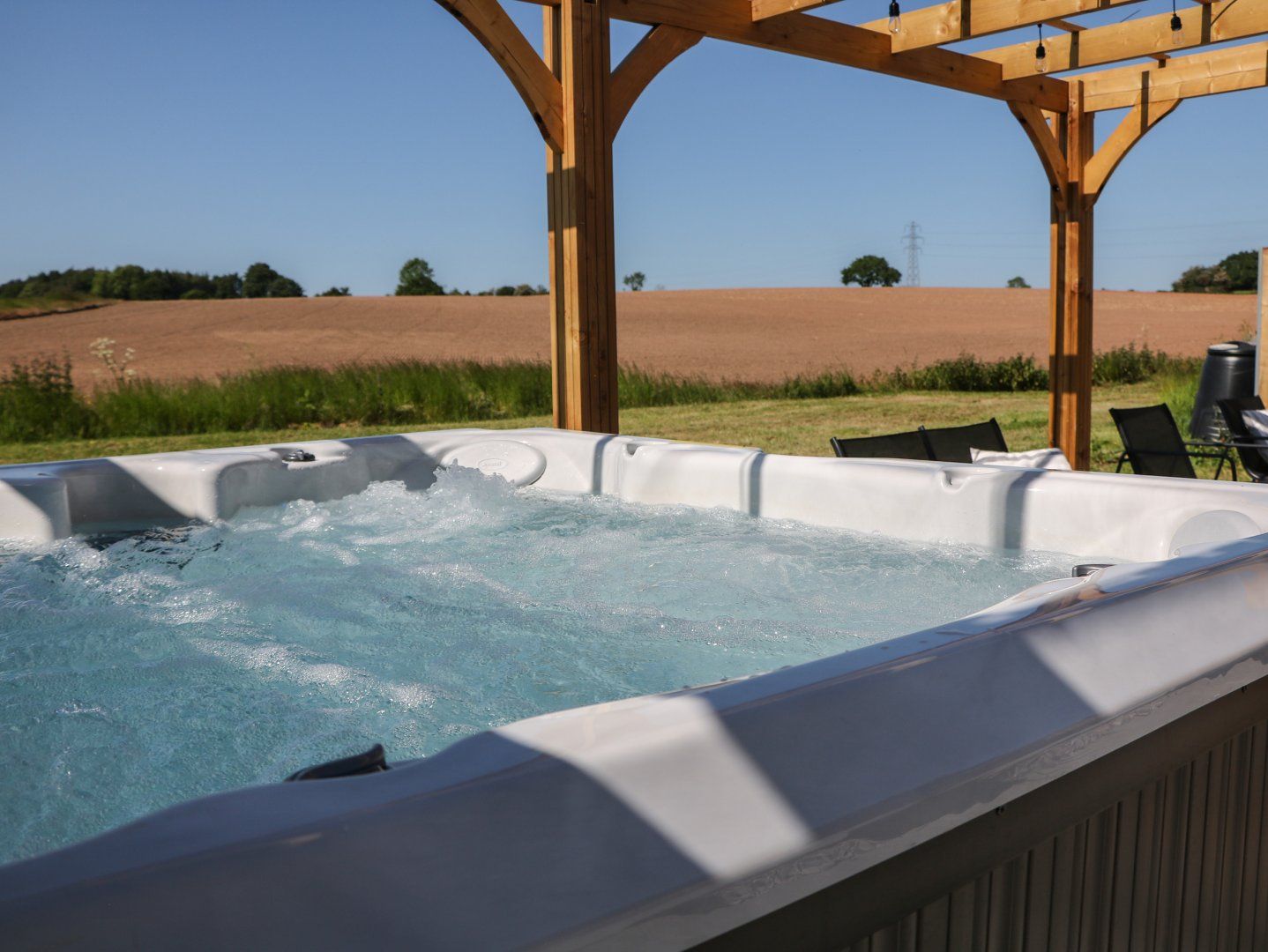 Amenities 2 x electric oven and hob, microwave, American-style fridge/freezer, washing machine, dishwasher. 75 TV with Disney+, Prime Video and Netflix, and WiFi inc. in rent. Fuel and power inc. in rent. Bed linen and towels inc. in rent. Highchair and travel cot available on request. Off-road parking for 8 cars. Garden with patio, barbecue/smoker, furniture and hot tub under pergola with outside lighting. Langley Barn is surrounded by open fields in all directions and has direct access to cross country public foot paths. Sorry, no pets and no smoking. Note: No Hen/Stag or similar parties. Shop 3.9 miles, pub 2.1 miles. Please note this property does not accept 1 night bookings. This property requires a minimum stay of 3 nights for bookings between 22/08/2026 and 03/09/2026.