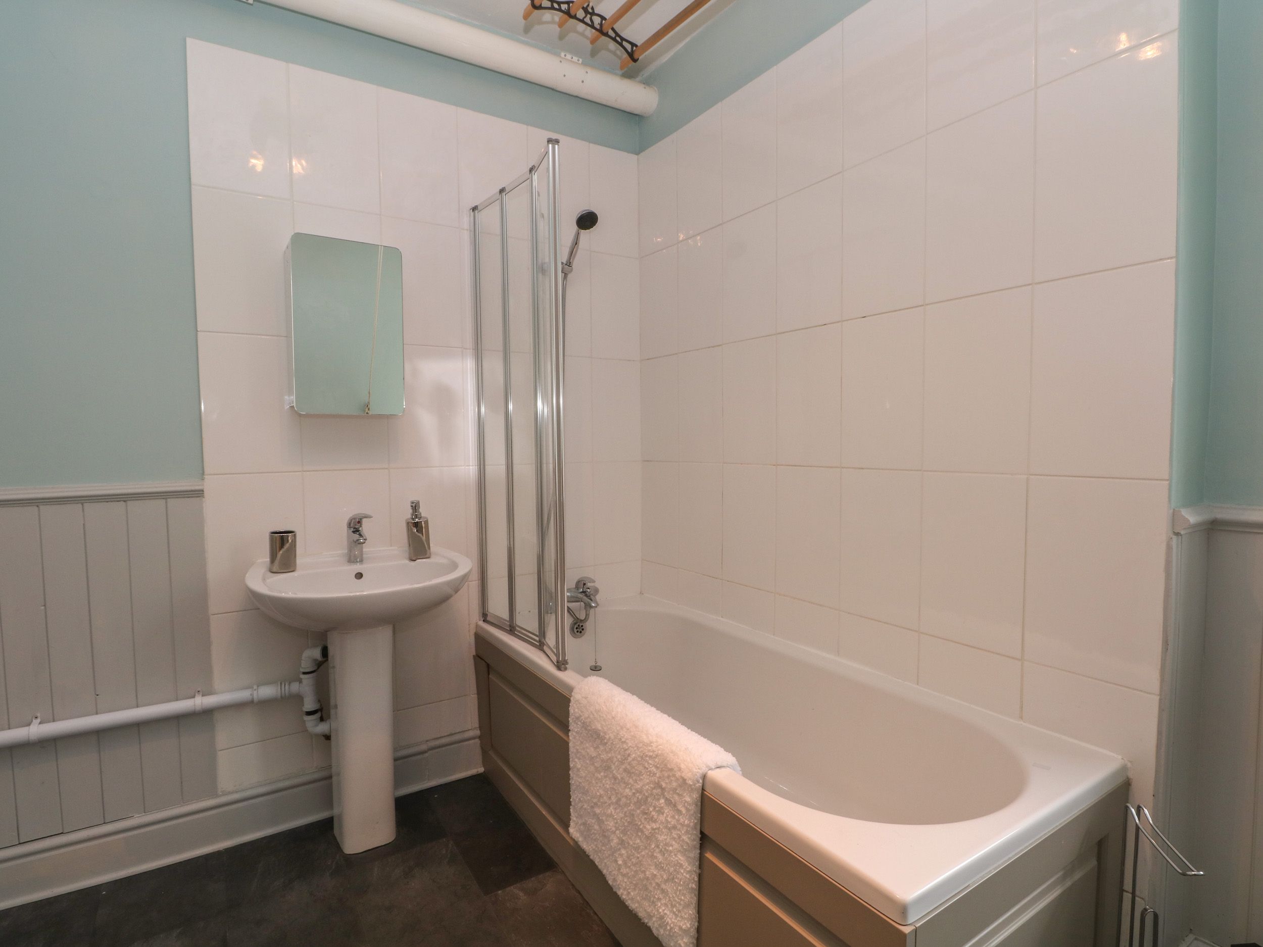 First-floor apartment. One king-size bedroom with open fire. Bathroom with bath, shower over, basin and WC. Kitchen. Living room/diner with open fire