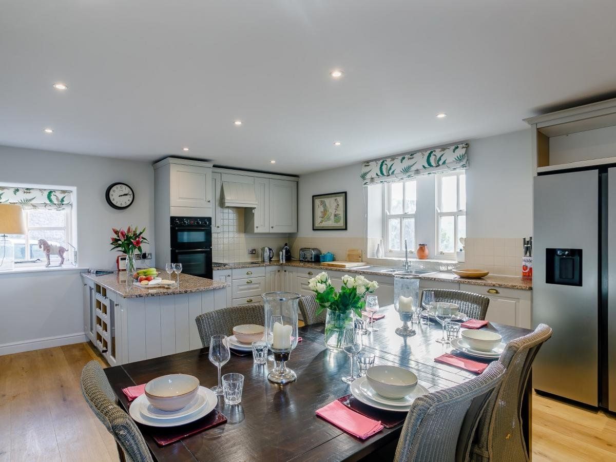 Offering ample space both inside and out, the property boasts a beautiful bespoke kitchen/diner, elegant lounge with wood burner, opulent bedrooms with exposed ceiling trusses and an al fresco dining spot with breath-taking rural views. Wander the rolling hills that surround this property or head to nearby Tissington (14 miles) to take on the 13-mile trail before stopping for a sweet treat at Bakewell (7.