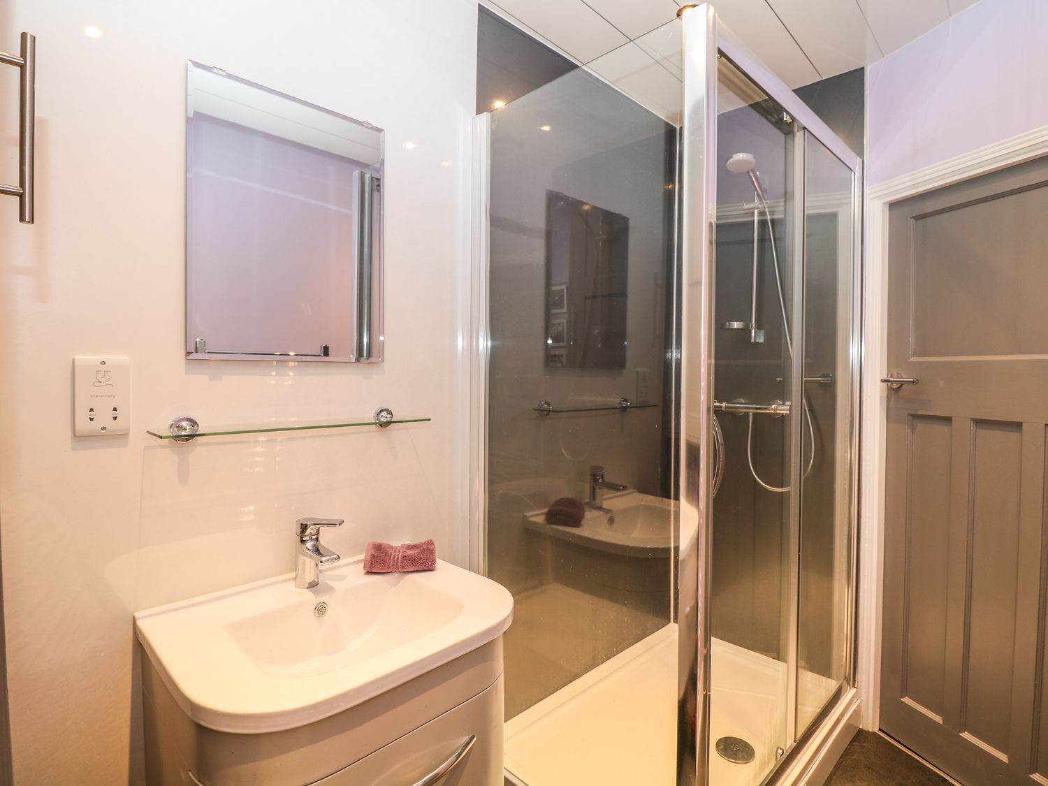 All ground floor. 1 x 5ft king-size double. Shower room with walk-in shower, basin and WC. Open-plan living room with kitchen, dining area and sitting area.