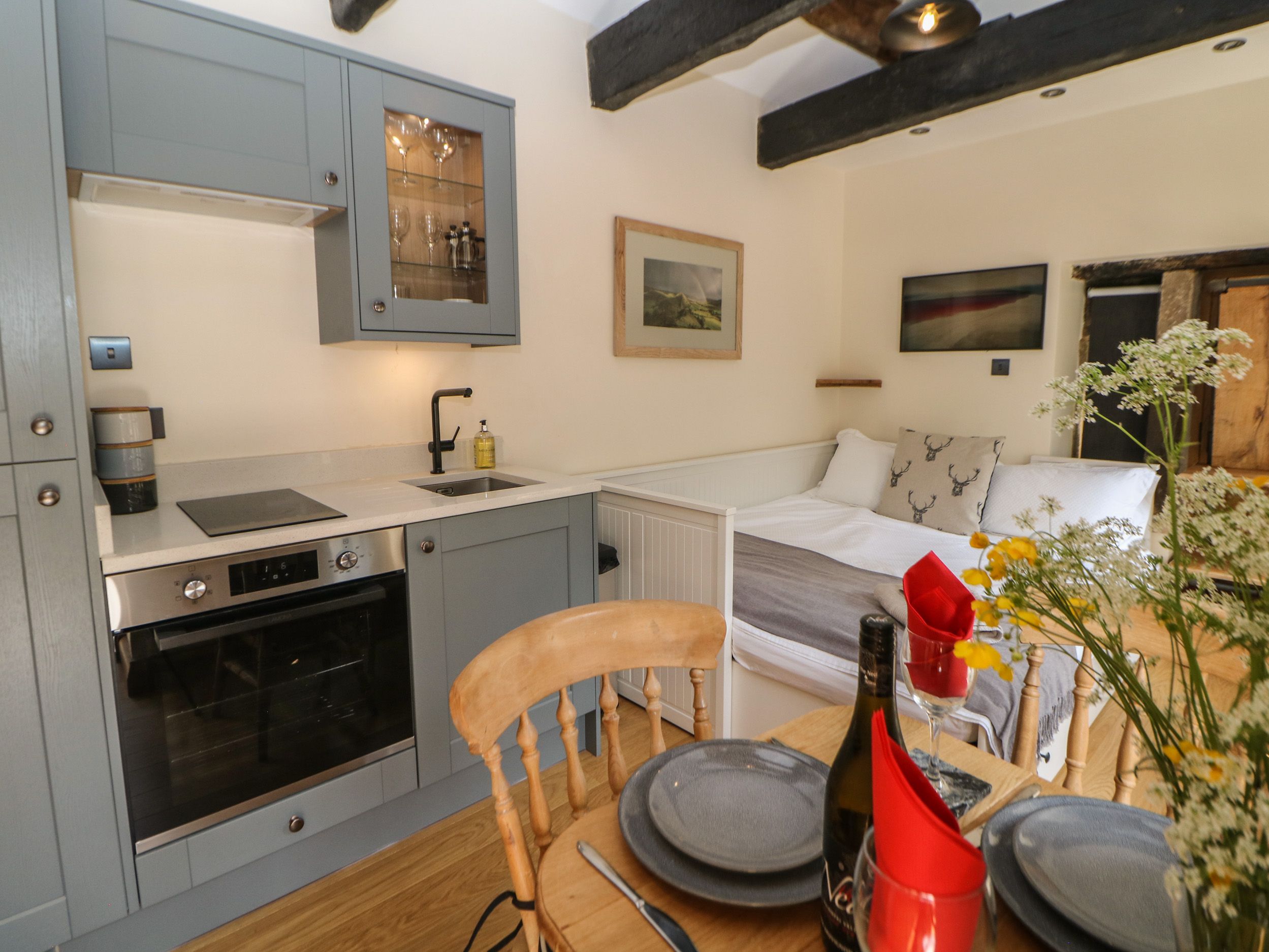 Holiday home The living areas in this single-storey property consist of a double bed with Smart TV, kitchenette equipped with electric oven and 2-ring hob, microwave, fridge and a coffee machine and a dining area with seating for two guests. Outside there is a shared courtyard with furniture and roadside parking is available. Within 2.2 miles you will find a shop and within 1.3 miles, a pub. Sorry, no pets, no smoking. WiFi, fuel, power, bed linen and towels are all included in the price. Woodbine Retreat is a lovely base to enjoy the delights of Derbyshire.