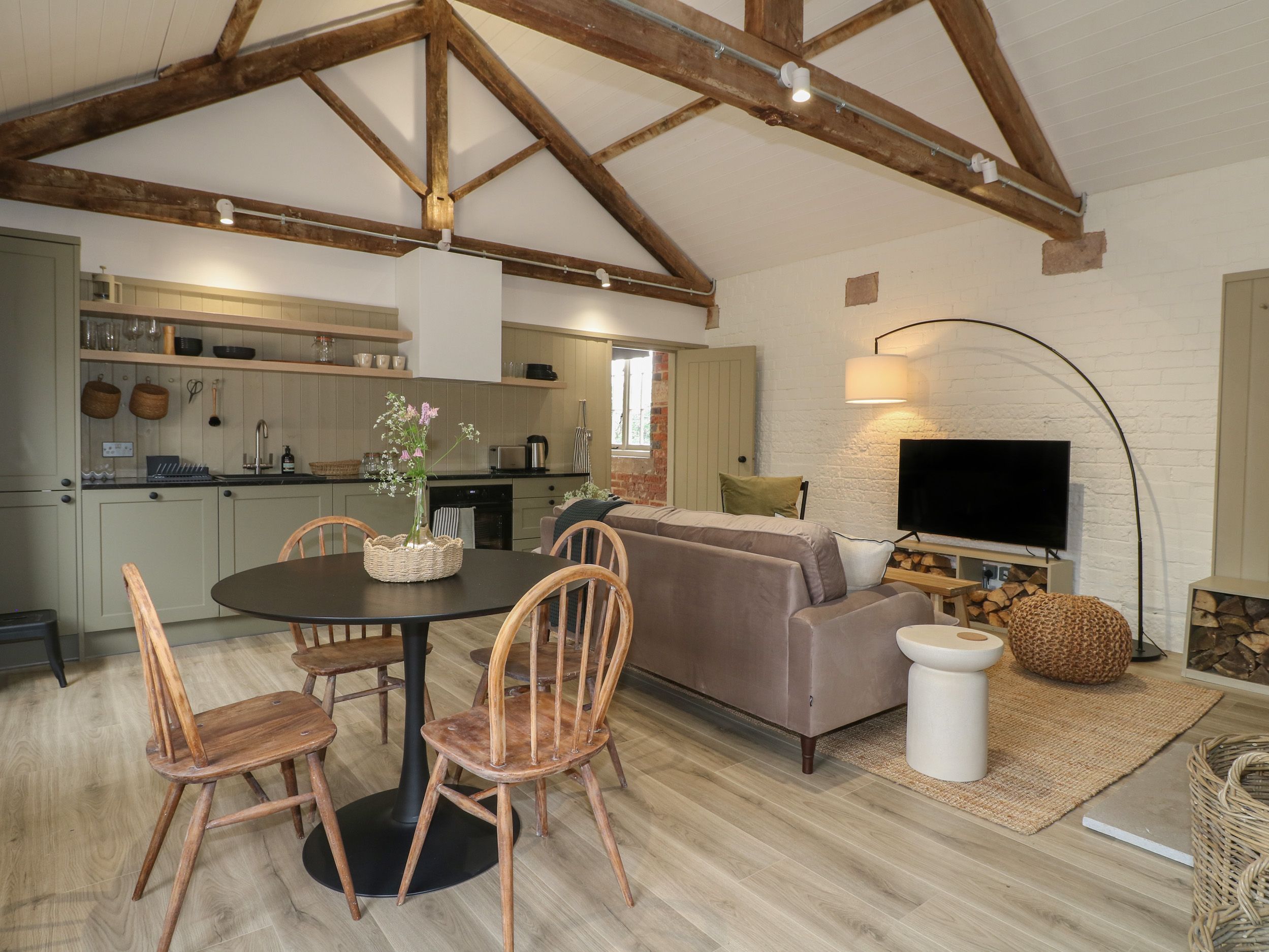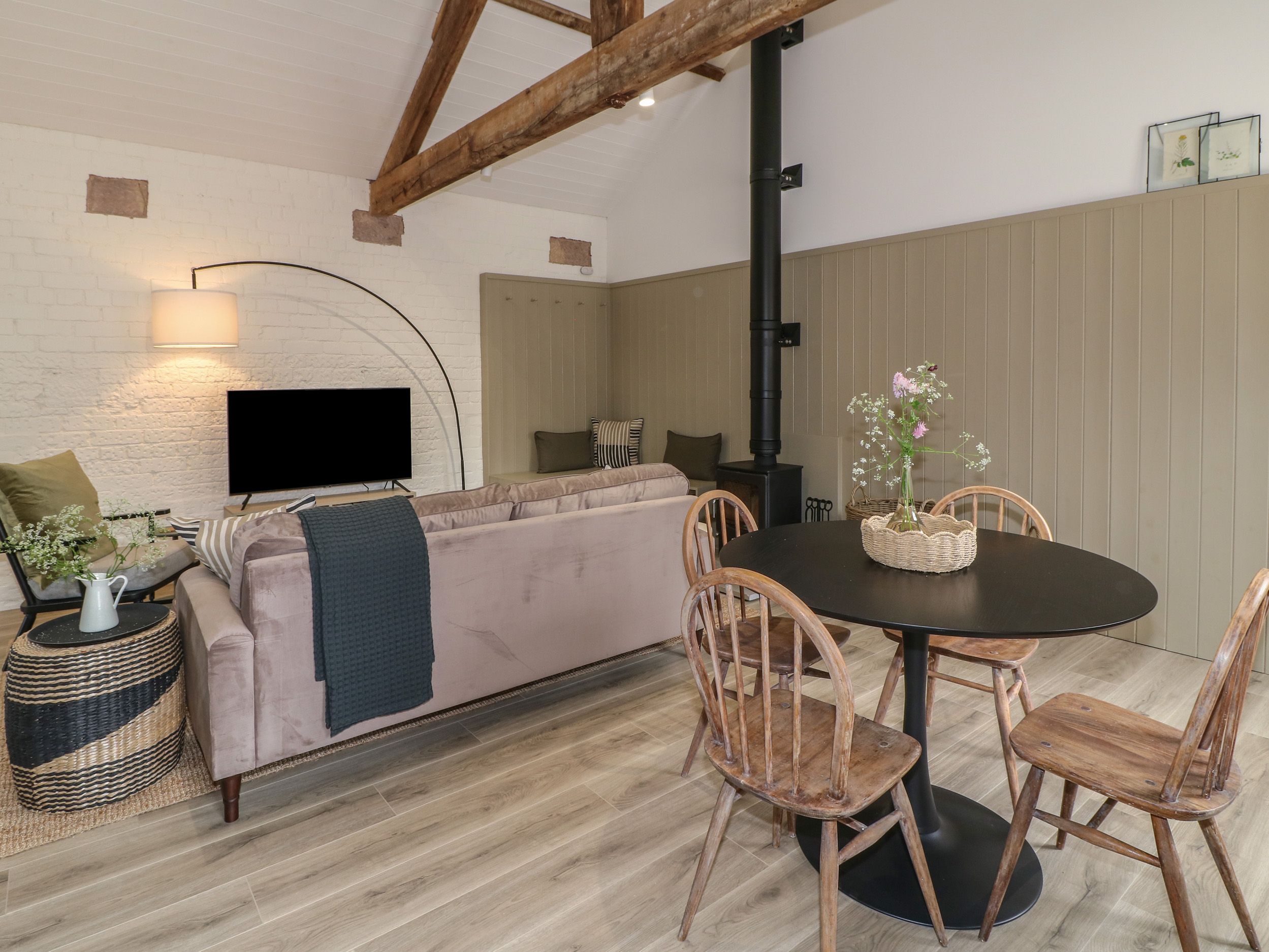 Accomodation Details This property does not accept arrivals on a Sunday. Single-storey. One king-size bedroom with access to Jack-and-Jill bathroom. Jack-and-Jill bathroom with freestanding bath, walk-in shower, double basin, heated towel rail, and WC. Open-plan living space with kitchen, dining area and sitting area with woodburning stove