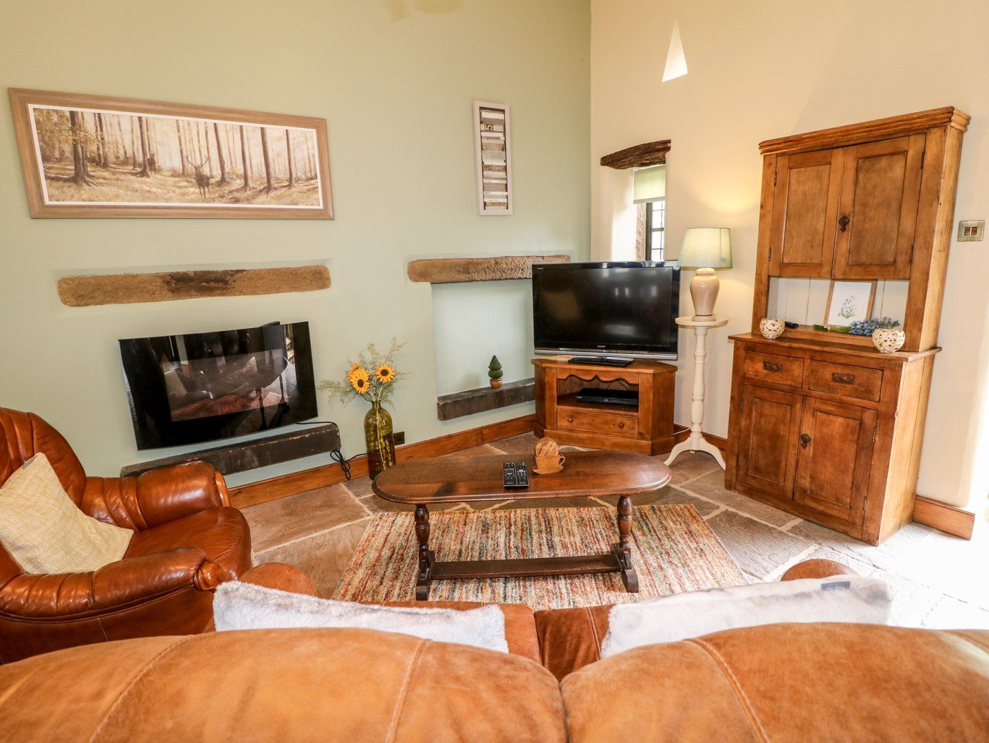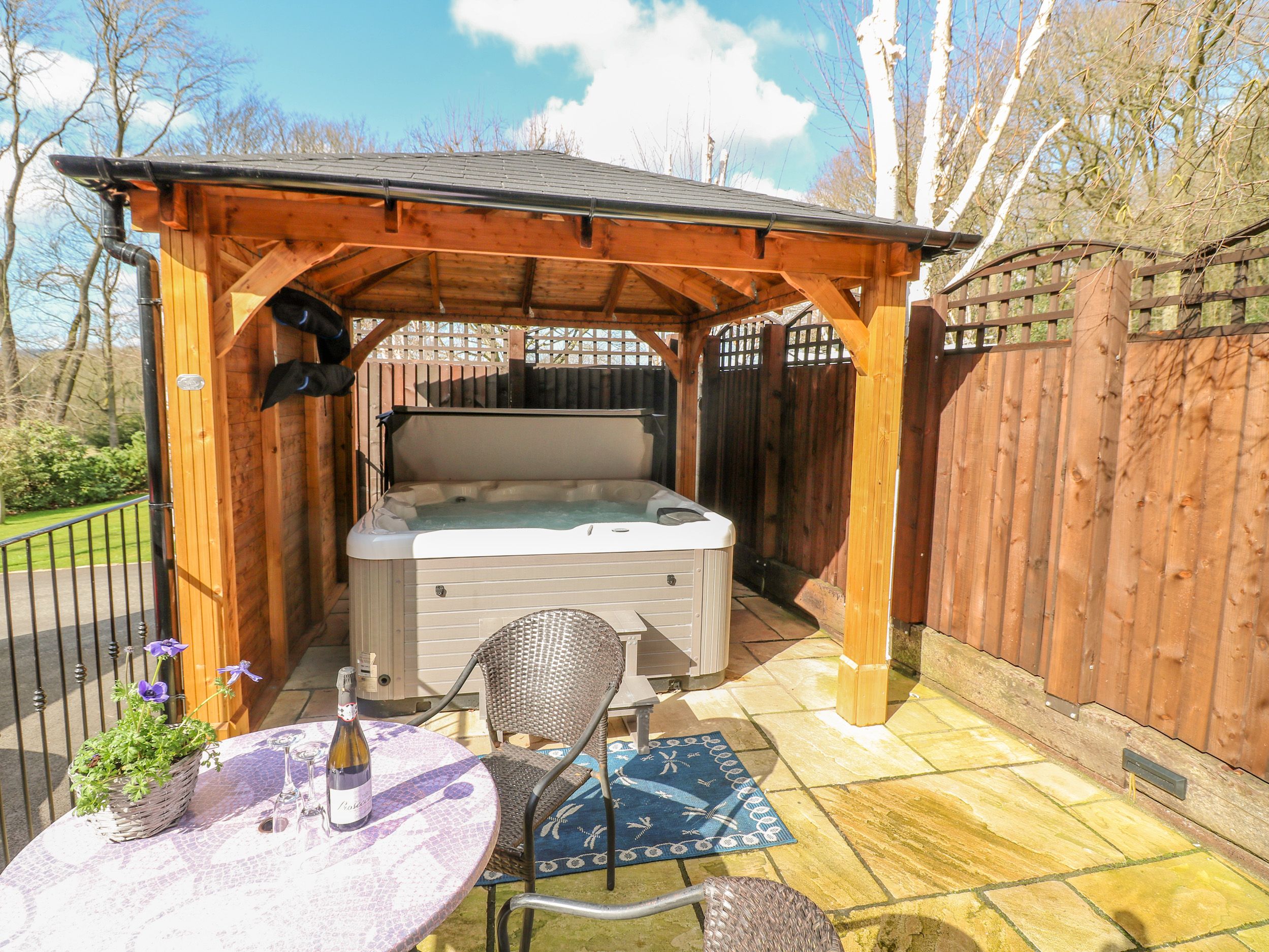 Amenities Gas central heating with electric fire. Electric oven and gas hob, fridge, freezer, washing machine, TV with Freeview and DVD's, WiFi, selection of books and games. Fuel and power inc. in rent. Bed linen and towels inc. in rent. Highchair and travel cot available. Off-road parking for 1 car at property, additional parking for 2 cars in communal car park. Garden with patio, seating, hot tub and shared lawn space with barbecue. One medium-sized dog welcome. Sorry, no smoking. Shop 2.9 miles, pub 1.6 miles. Note: There are three stone steps leading up to the patio area, please take care.