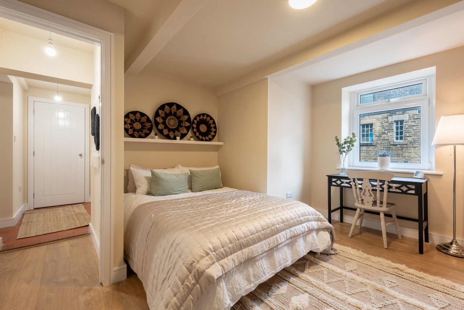 Holiday home 8 Booth Court, a ground-floor apartment has an open-plan kitchen, dining area and sitting area with electric fire, a double bedroom with TV, a twin (zip/link), and a shower room. Appliances consist of an electric oven and hob, fridge with freezer box, and Smart TV. Outside there is a rear courtyard with furniture and roadside parking. One well-behaved dog welcomed, but sorry, no smoking. WiFi, fuel, power, bed linen and towels are all included in the price. You'll find a shop and a pub in 0.1 miles. Enjoy the heart of Derbyshire at 8 Booth Court. Note: There are steps to the exterior and interior of this home. Note: The courtyard is not enclosed and has cobbled access.