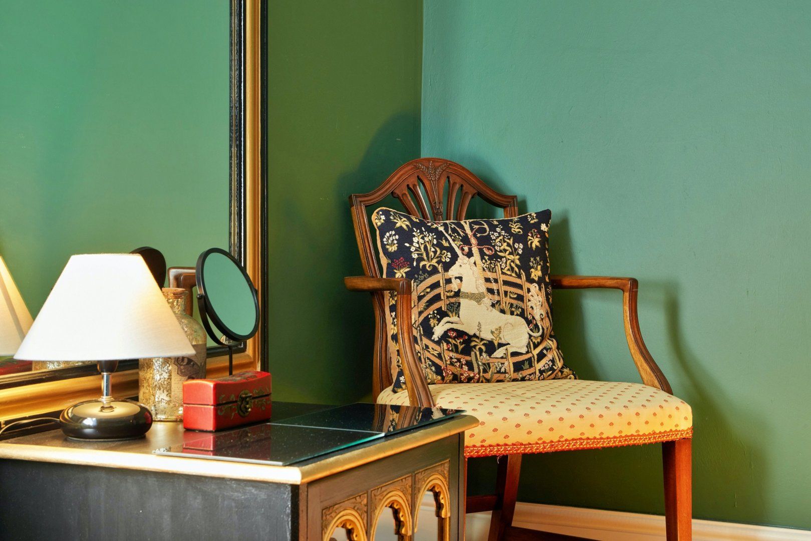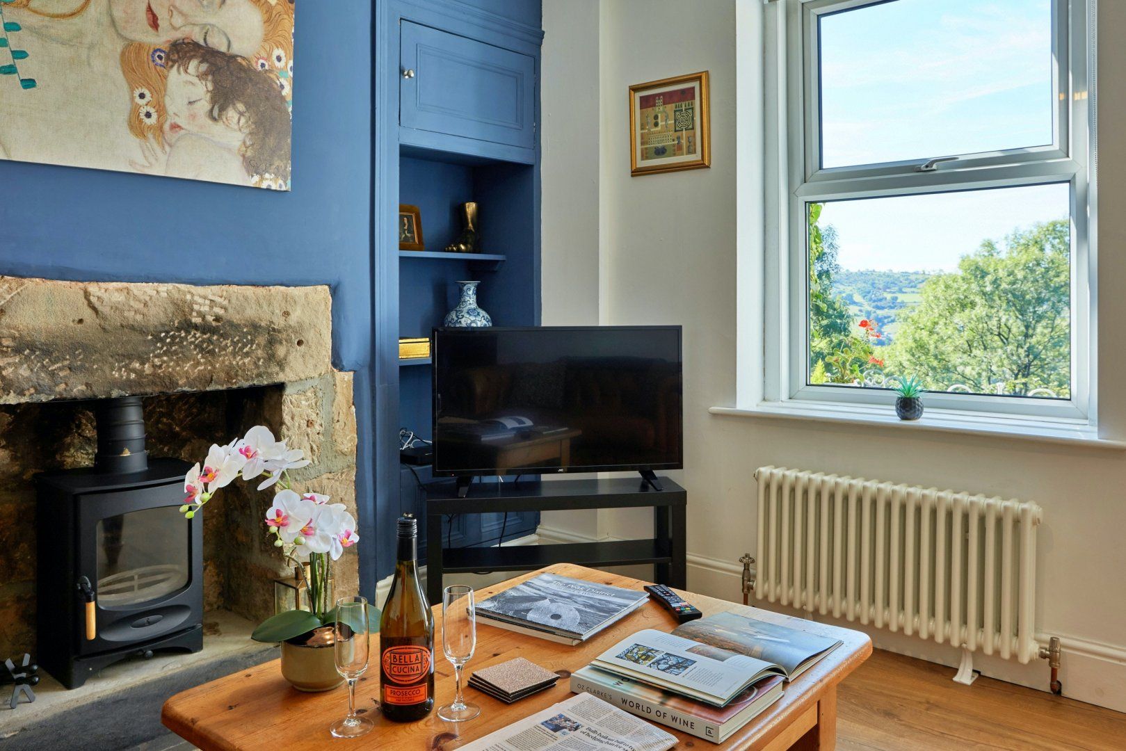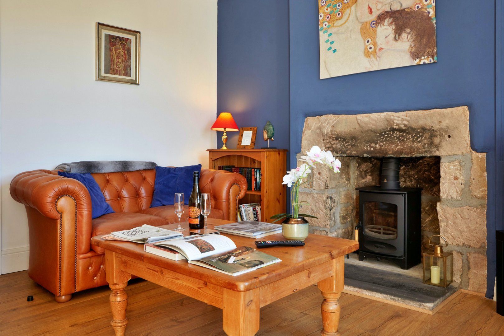 Rich tones add to the luxurious feel, from the distinguished bedrooms to the warm living room – nothing says cosy getaway like sinking into the sofa, warmed up by the log-burning fireplace, with the far-stretching landscape coming into view.