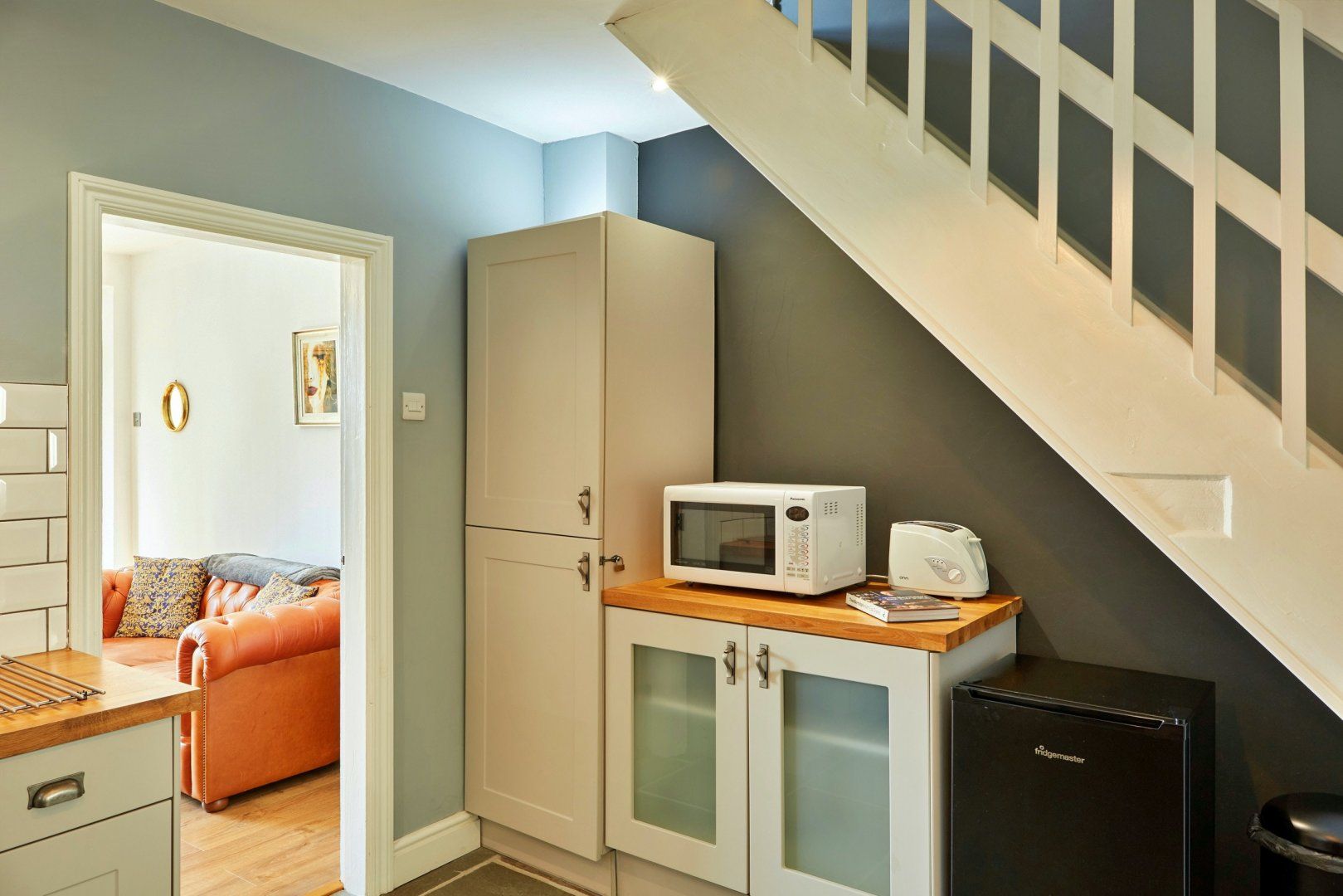 Inside, the cottage is the epitome of country chic, with contemporary appliances meeting classic features. The kitchen is the heart of it all – you’ll love preparing breakfasts in this wholesome setting, with the kitchen’s electric fireplace cutting through the early cold. Take your morning coffee out to your courtyard for a refreshing start to the day, or hurry back inside to be hugged by the warmth.