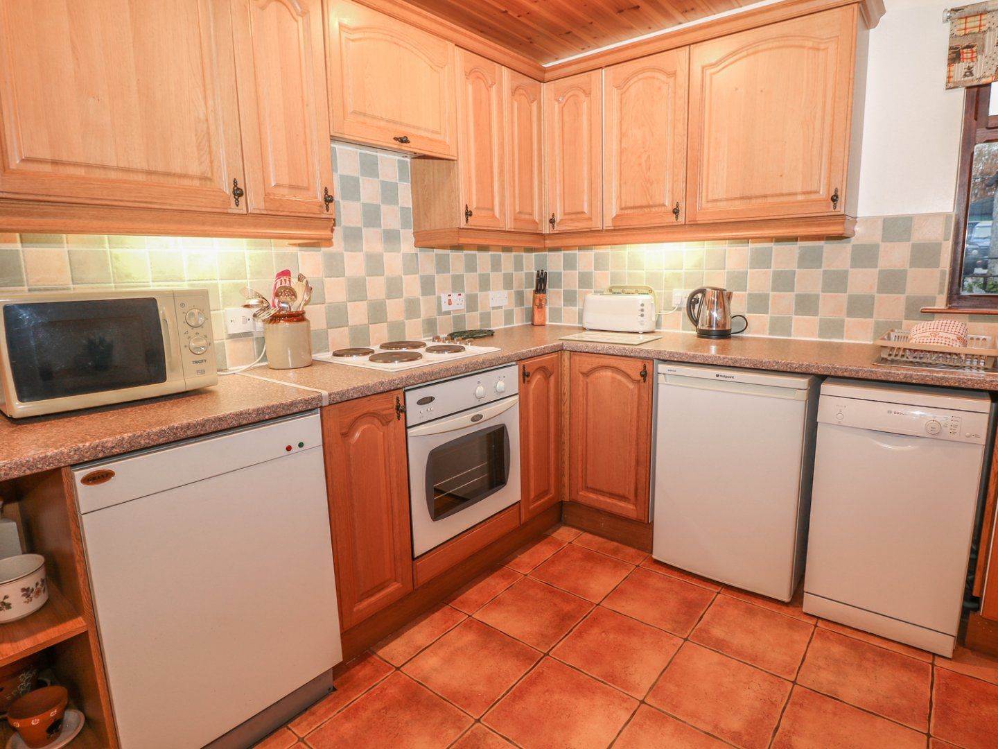 Amenities Oil central heating with gas fire. Electric oven and hob, microwave, fridge, washing machine, dishwasher, TV with Freesat, WiFi, selection of books, games and DVDs. Cot available. Piano in lounge. Fuel and power inc. in rent. Bed linen and towels inc. in rent. Off-road parking for 2 cars. Small courtyard with patio and picnic bench. No smoking. One well behaved pet welcome. Shop and pub 5 mins walk. Note: Situated on owner's farm. Note: Situated on a main road, some noise is to be expected. Note: There are steps up to the shower; please take care