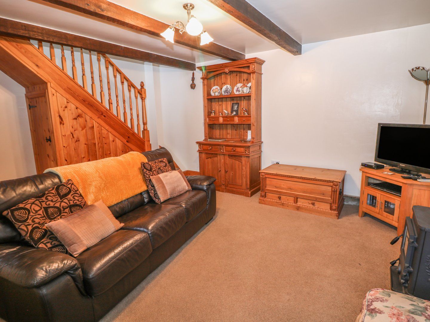 Sitting room with gas fire and Electric Reclining Sofa.
