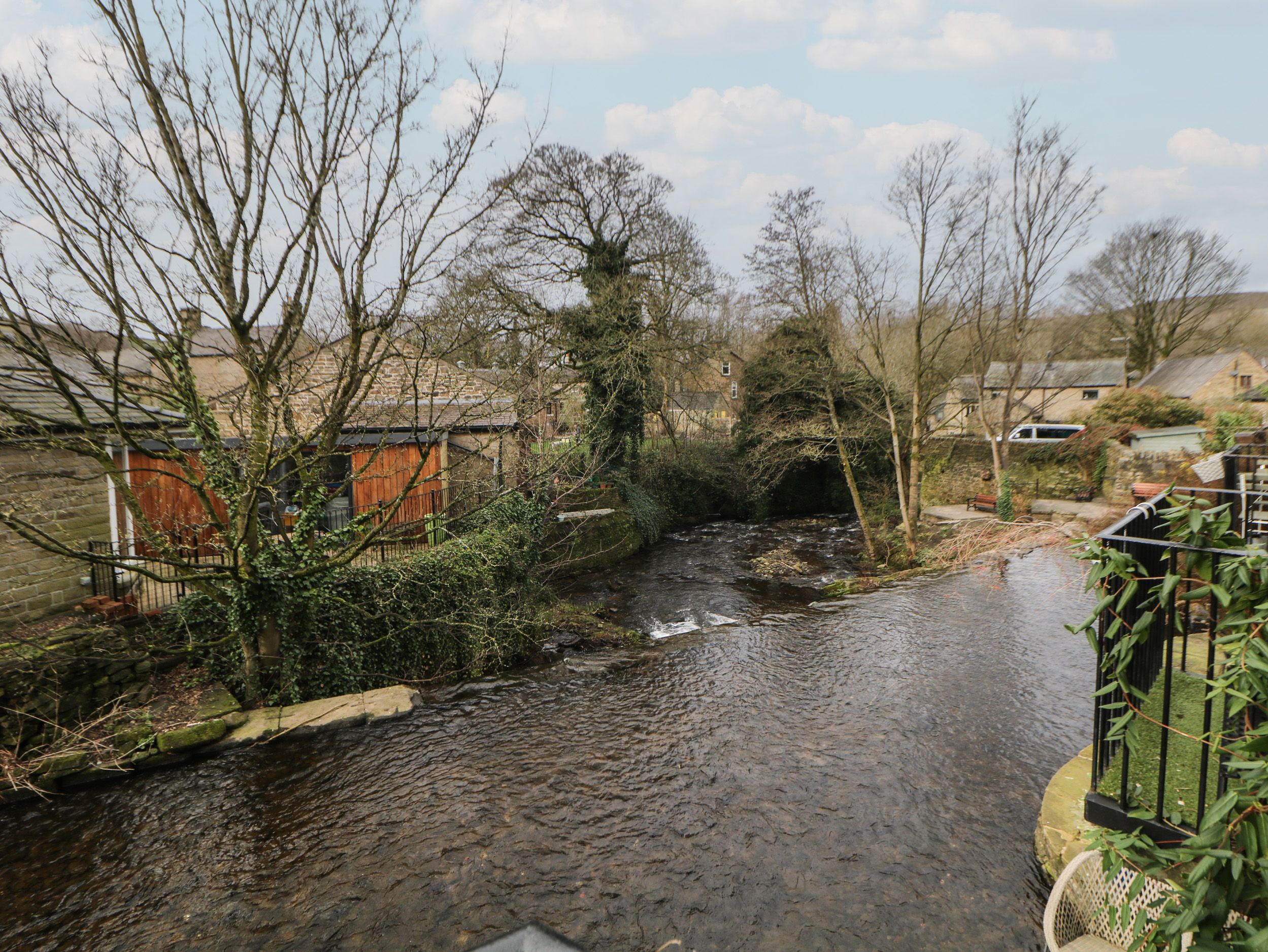 Amenities Gas central heating. Gas oven and hob, microwave, fridge/freezer, washing machine, dishwasher, kettle, toaster. Smart TV, TV and WiFi. Fuel, power and starter pack for woodburning stove inc. in rent. Bed linen and towels inc. in rent. Roadside parking. Enclosed balcony and rear patio. Sorry, no pets and no smoking. Shop and pub 0.1 mile. Note: This property has a spiral staircase, please take care. Note: The rear patio is not enclosed and is next to the river, please take care.