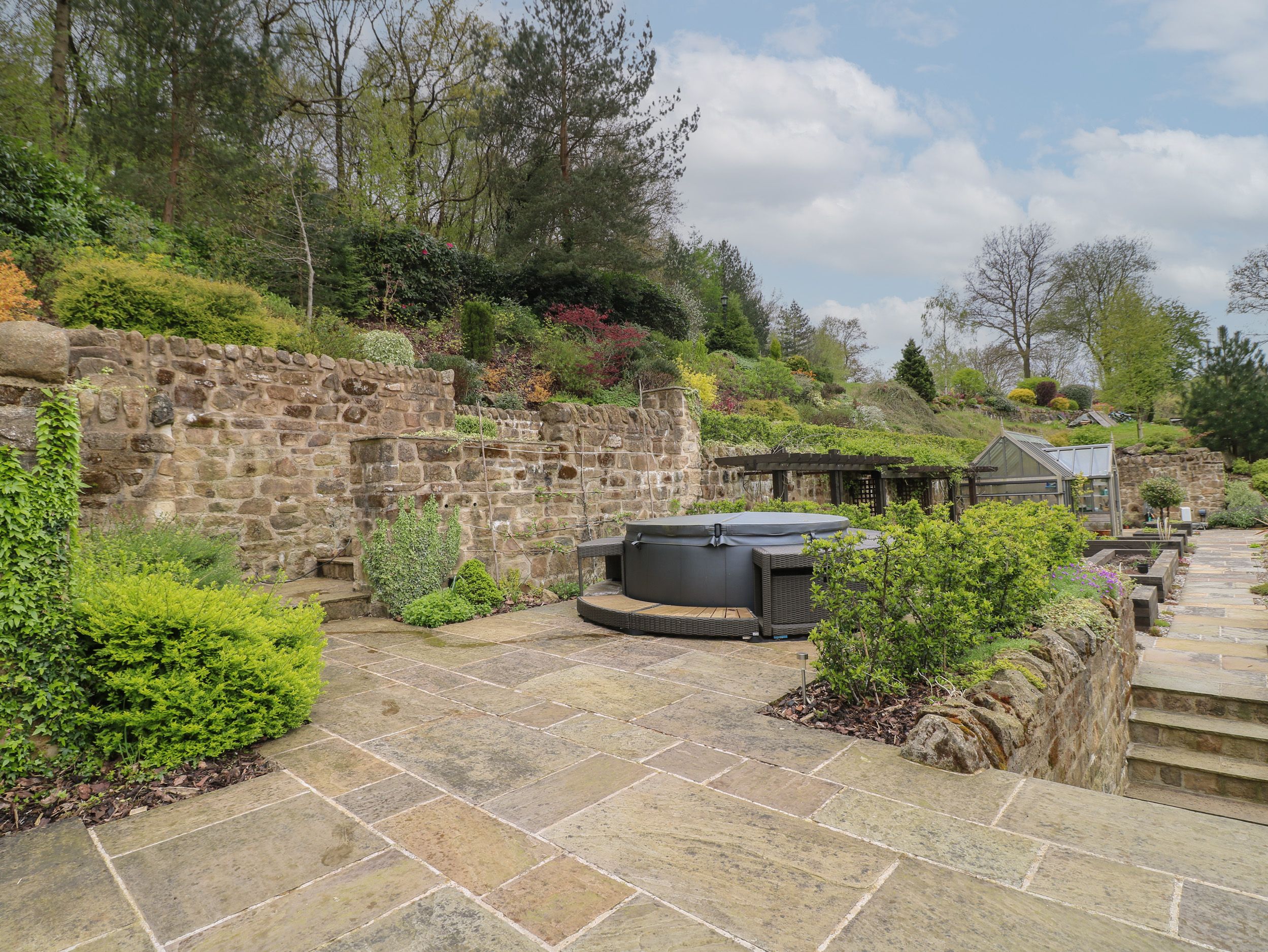 Amenities Underfloor heating. Electric oven and hob, microwave, fridge/freezer, dishwasher, kettle, toaster. 2 x Smart TV, WiFi. Fuel and power inc. in rent. Bed linen and towels inc. in rent. Off-road parking for 2 cars - access via unmade bridlepath. Non-enclosed terrace with furniture, barbecue, hot tub, and access to 14 acres of private landscaped gardens and woodlands. Sorry, no smoking. Shop 2.8 miles, pub 0.7 miles, river 1.7 miles. Note: Steps up to the property. Note: The property is on a bridal path and is not accessible for low cars, there are pot holes. Please note: This property does not accept infants.