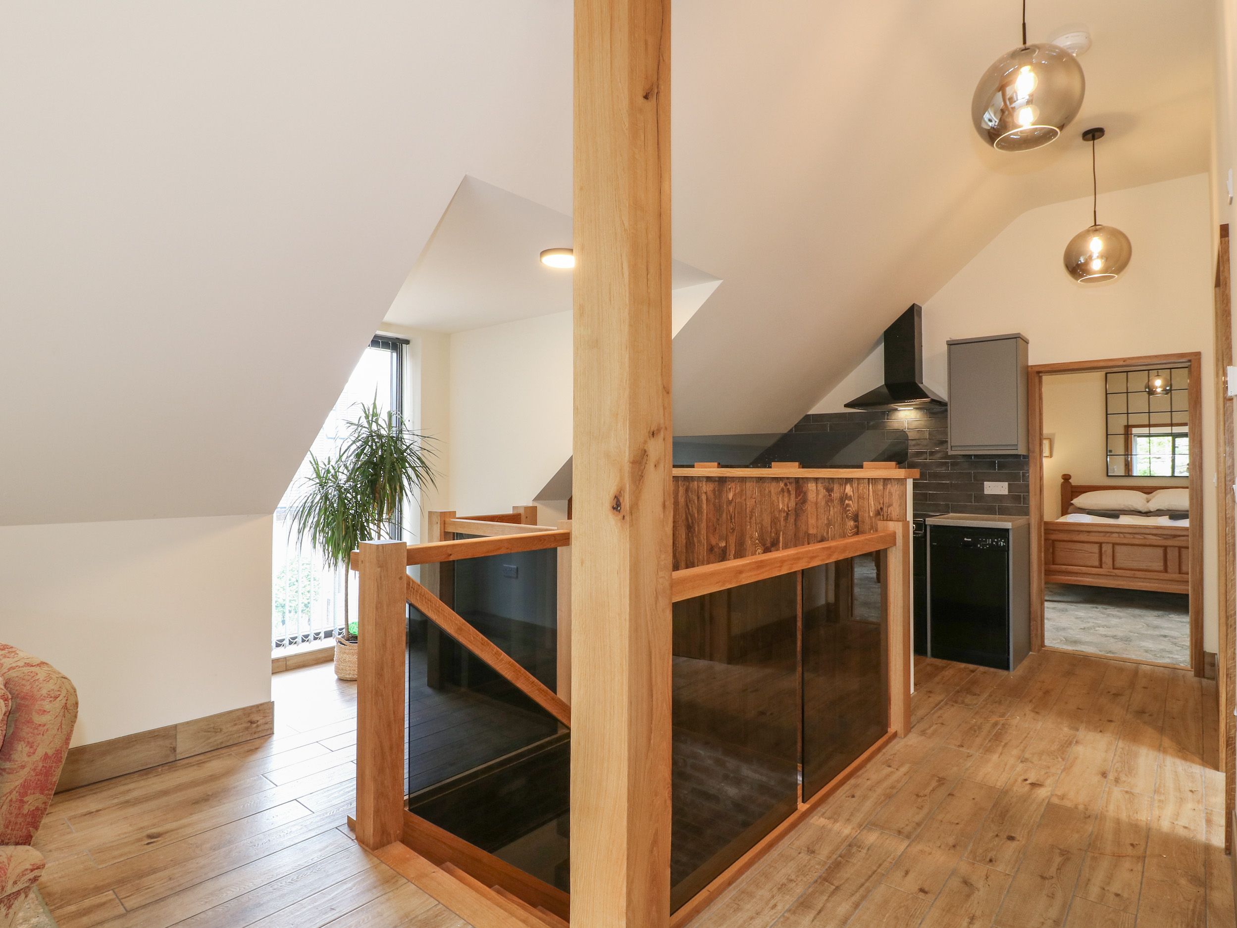 Holiday home Barn at Catacol consists of a first-floor open-plan living space with a kitchen with electric oven and hob, microwave, fridge/freezer and dishwasher, a dining space for two and a sitting area with Smart TV. There is a king-size bedroom with Smart TV, serviced by a bathroom. Outside there is a non-enclosed raised terrace with furniture, barbecue, and hot tub, plus 14 acres of landscaped gardens and woodland, plus off-road parking for two cars. Within 2.8 miles, you will find a shop, within 0.7 miles, a pub, and within 1.7 miles, a river, and please note this is a smoke-free property. WiFi, fuel, power, bed linen, and towels included in the rent. Explore Derbyshire with a romantic stay at Barn at Catacol. Note: Steps up to the property. Please note: This property does not accept or infants.