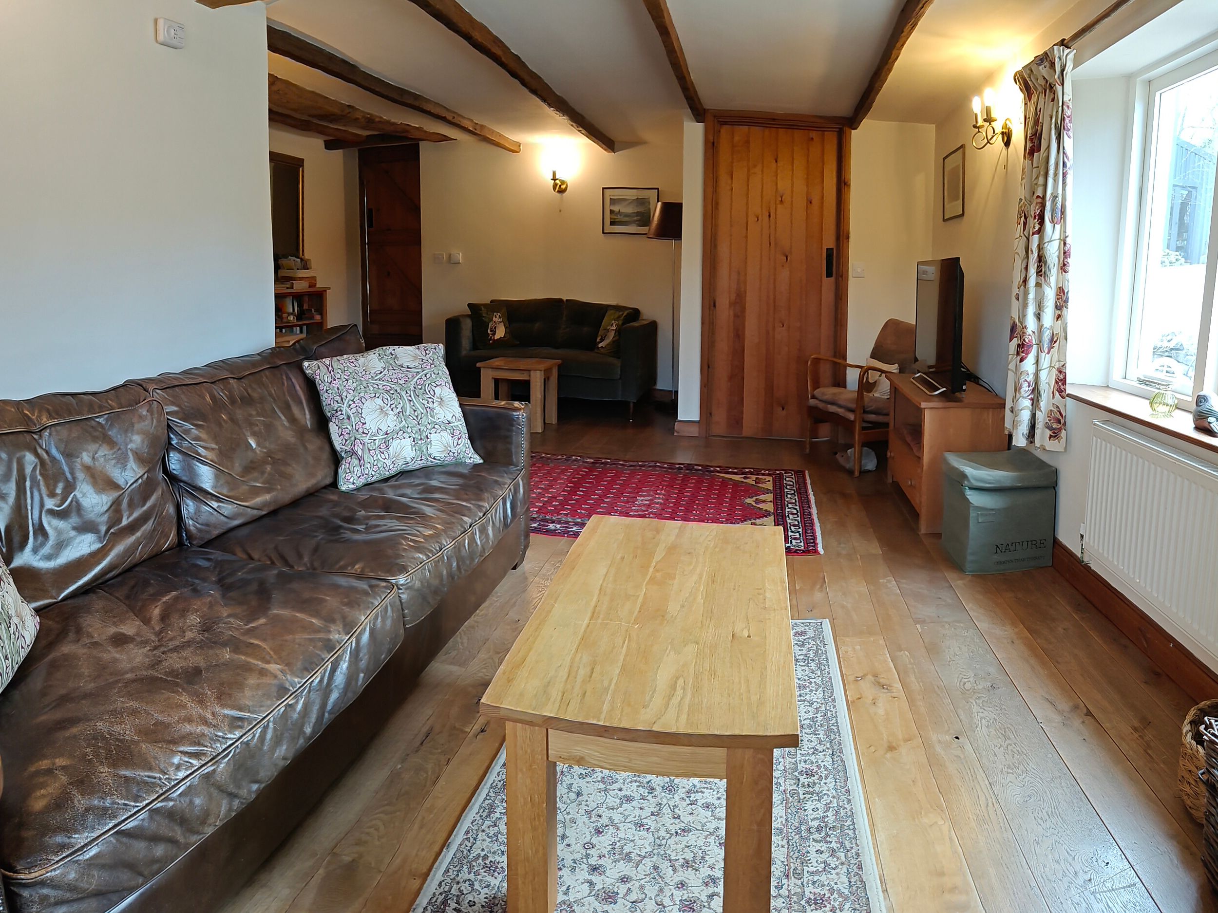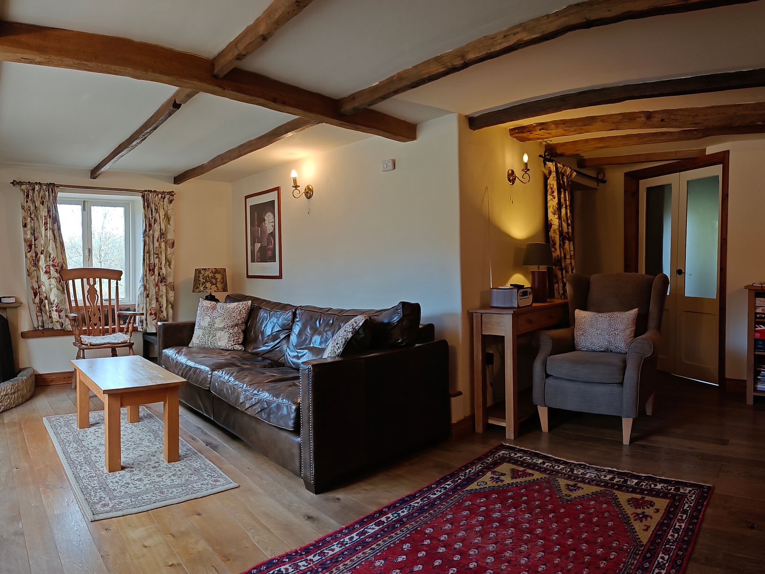 Four bedrooms: Upstairs: 1 x king-size with en-suite shower, basin and WC, 2 x double, Bathroom with a corner bath, separate shower, basin and WC. Ground floor: 1 x ground-floor twin with adjacent shower room with basin and WC.Kitchen/diner, with utility room.Sitting room with wood burning stove.