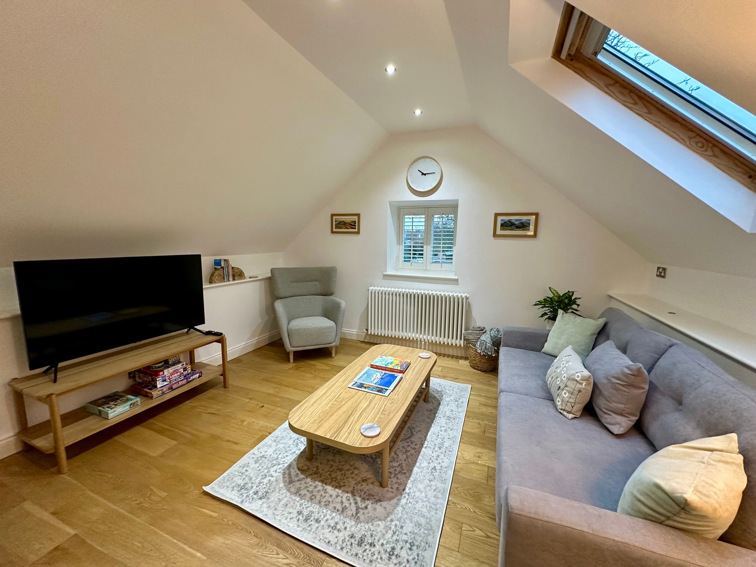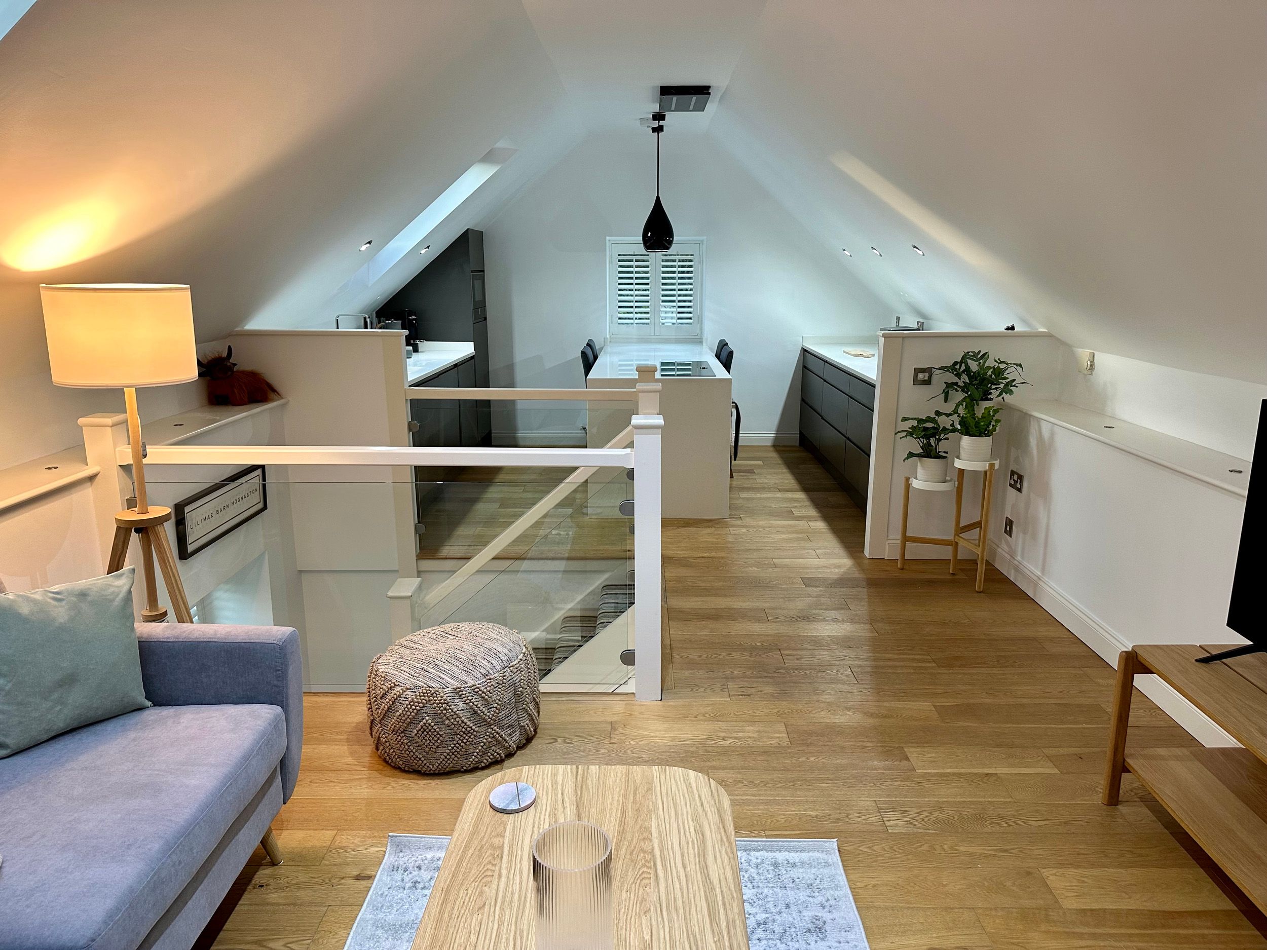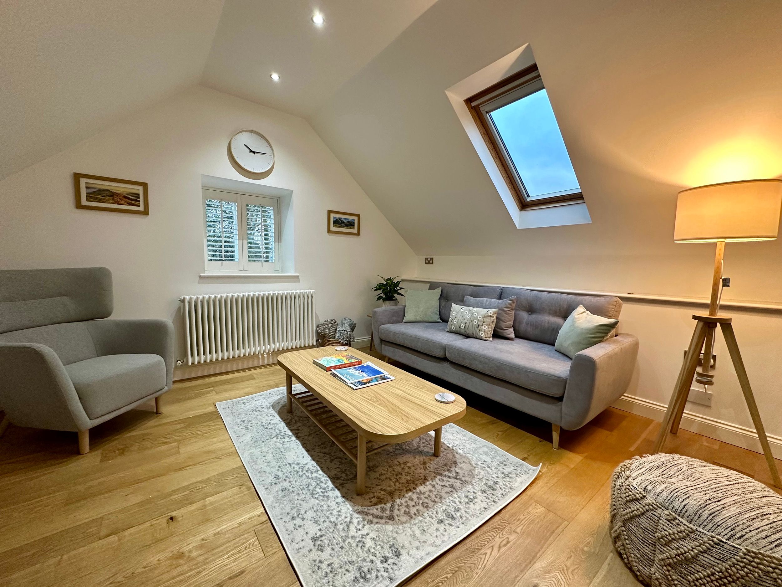 Accomodation Details Reverse-level layout. Two ground-floor bedrooms: 1 x king-size with Smart TV, 1 x queen-size (single). Ground-floor bathroom with bath, walk-in shower, basin, heated towel rail, and WC. First-floor open-plan living space with kitchen, dining area and sitting area