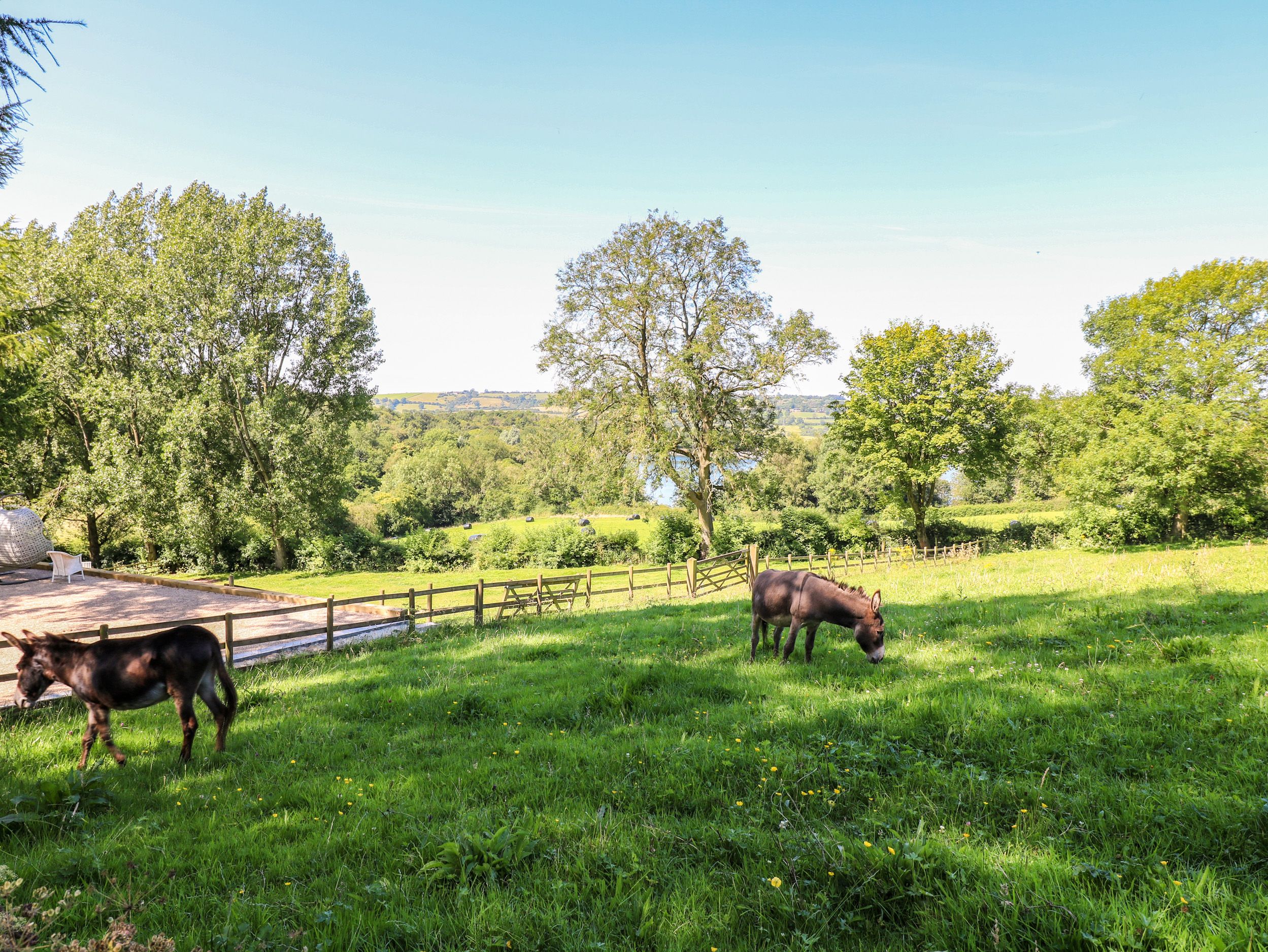 Amenities Fully air-conditioned Air Source heating. Electric oven, induction hob, fridge, microwave, Washing Machine, Tumble Dryer TV with Freeview, WIFI, selection of books, games and DVDs. Fuel and power inc. in rent. Bed linen and towels inc. in rent. Highchair and travel cot on request. Ample off road parking. Large storage area for Bikes if required. Shared use of fields and paddock area with seating area. One well-behaved dog welcome. Shop and pub 1.2 miles. Note: No smoking is allowed in this property.