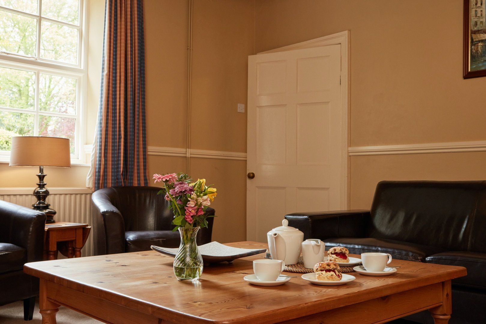 The warm shades, exposed brick, and vaulted ceilings exude old-world homeliness. And if that doesn’t make you feel cosy and at home, the log-burning fireplace sure will. You’ll love family mornings in the living room, chatting over mugs of tea and bacon sandwiches while the fireplace cuts through the brisk morning cold. And with a consistent view of the lush greenery right outside, it's truly a bucolic scene.