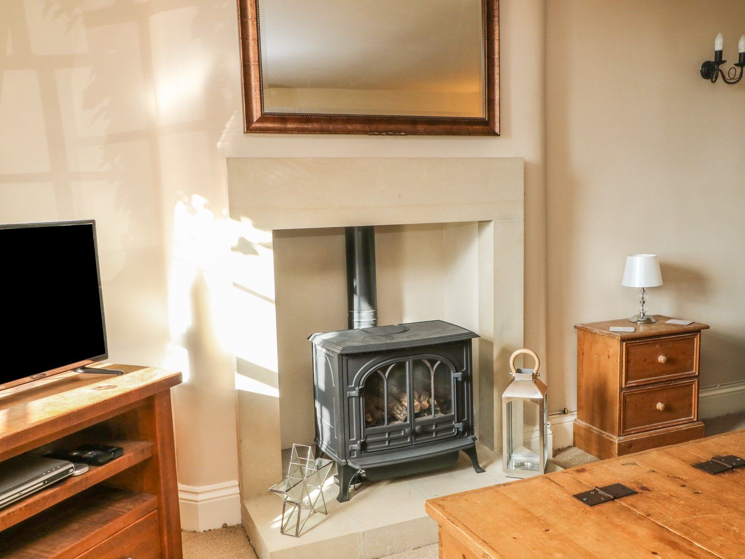 Three bedrooms: 1 x double with en-suite shower, basin and WC, 1 x double, 1 x twin. Bathroom with roll-top bath, hand-held shower, basin and WC. Kitchen/breakfast room. Utility. Dining room. Sitting room with gas stove.