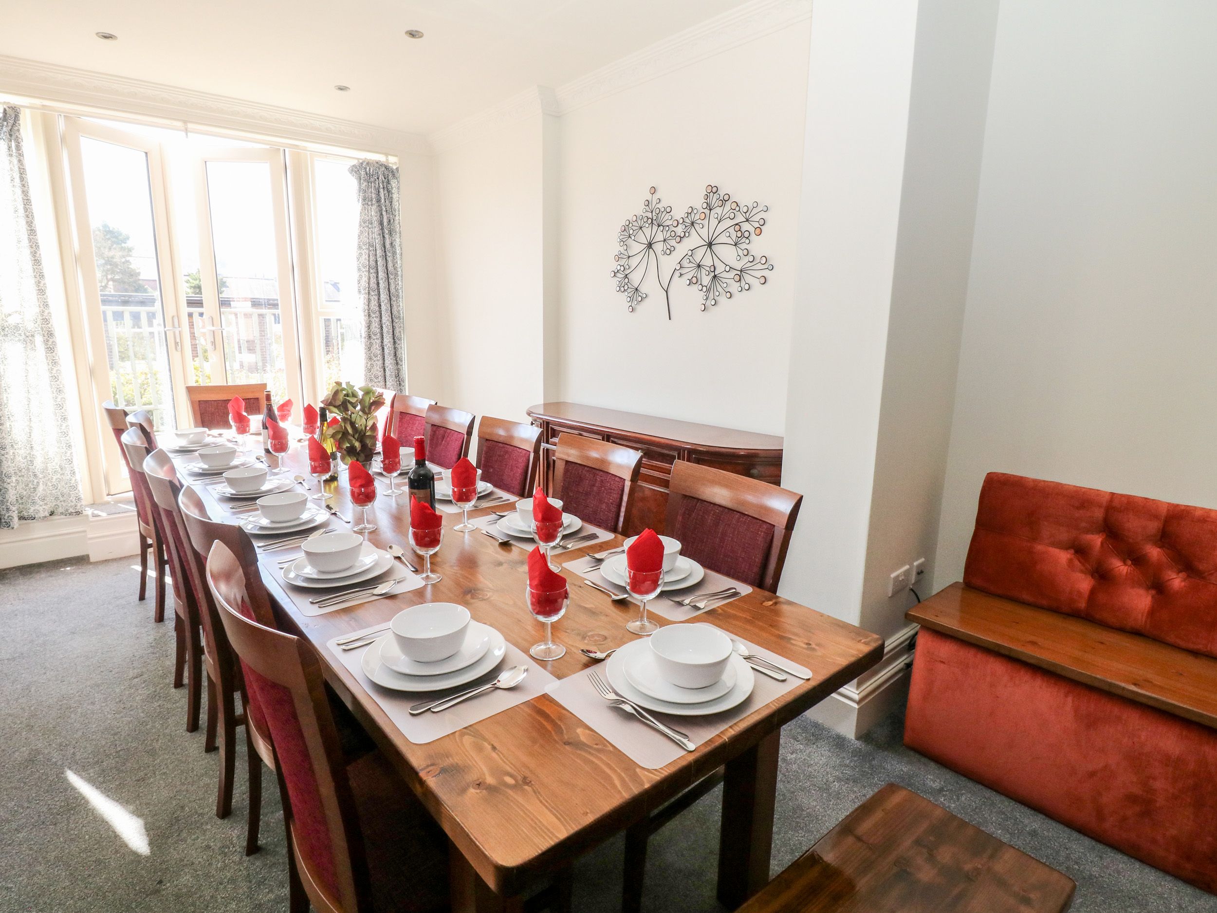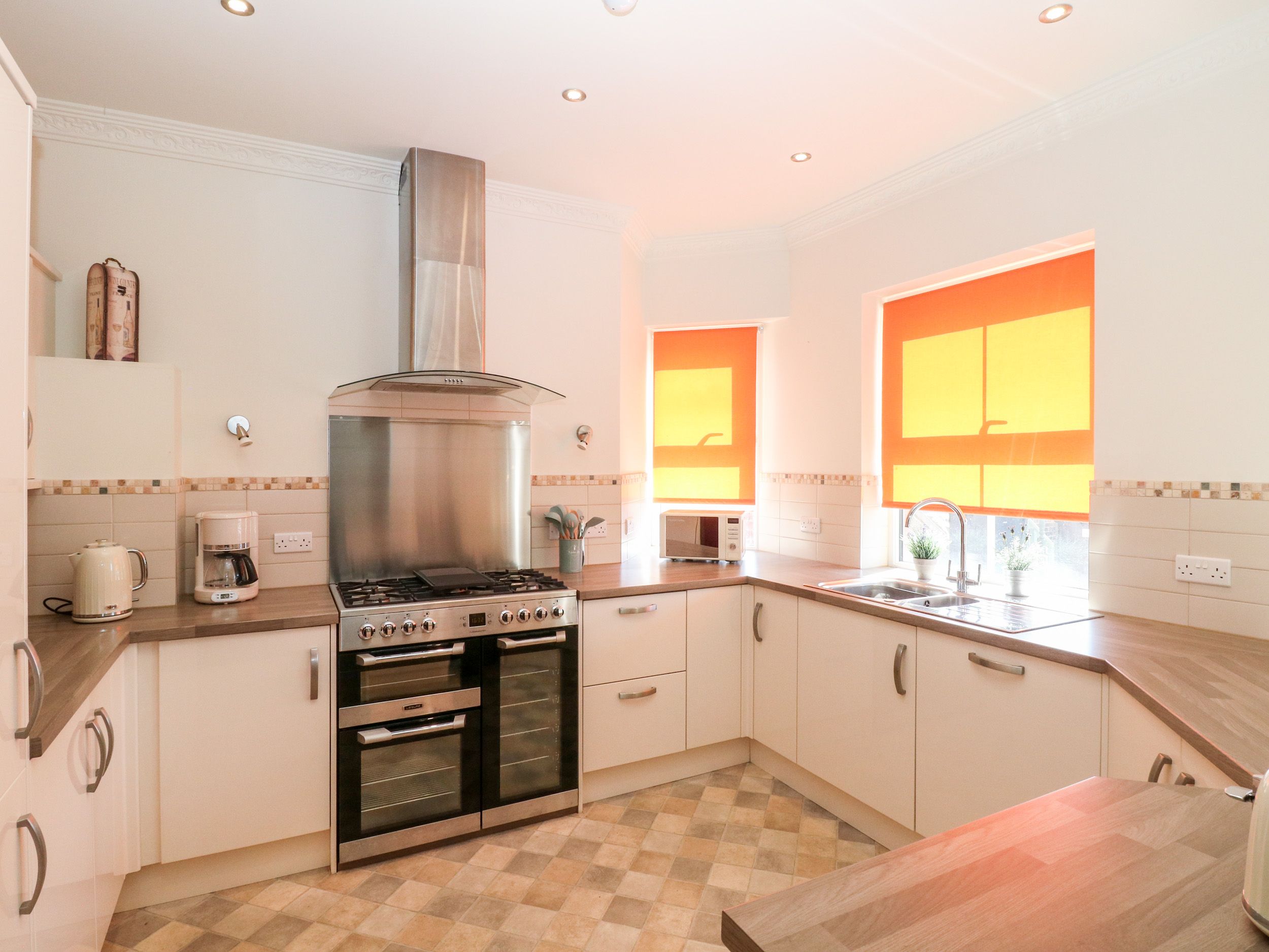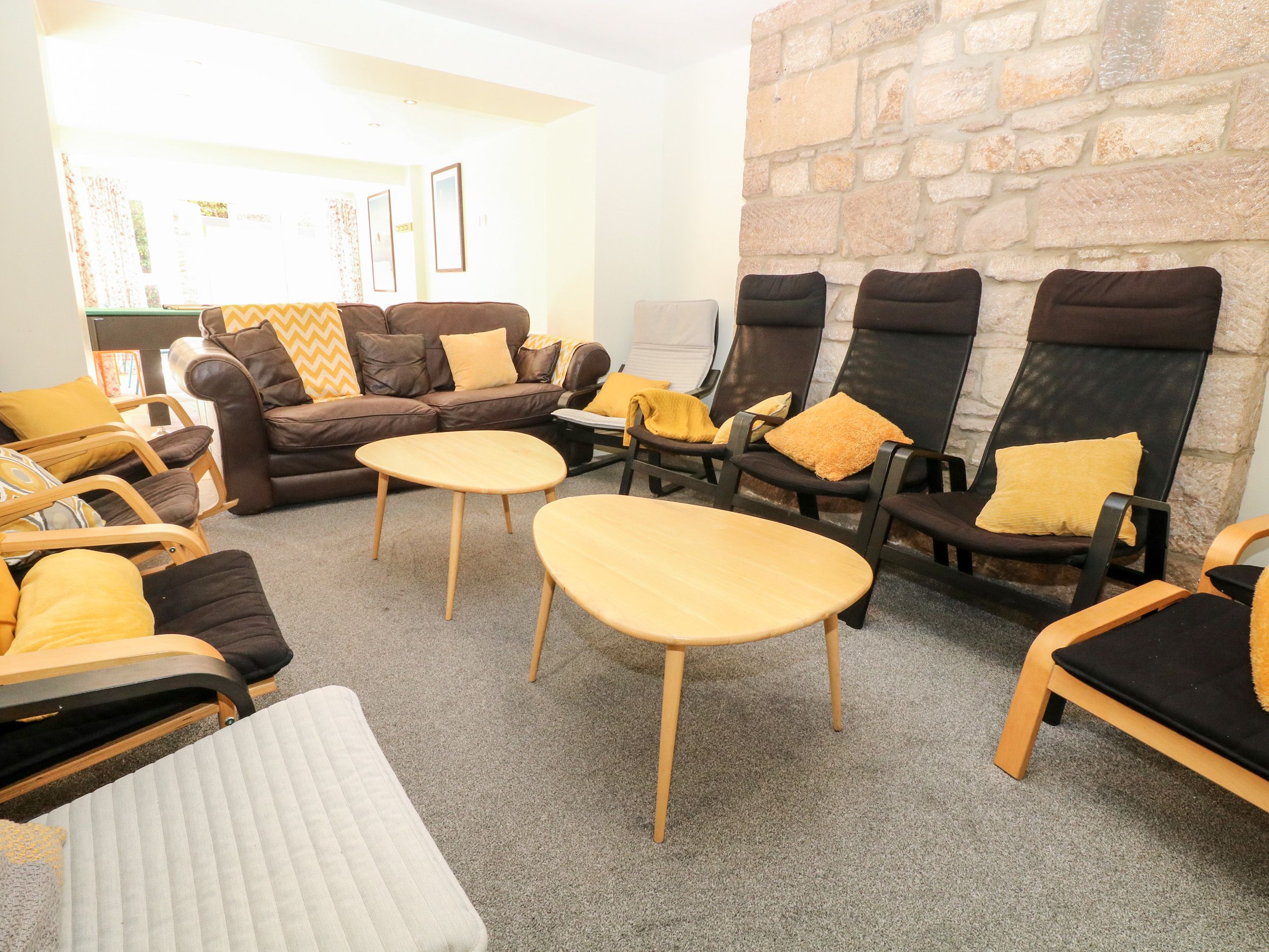 Ground floor, Double bedroom with en-suite shower room, Open plan kitchen/ dining / seating, utility room,WC, patio balcony. Downstairs is the lower garden level, super king size ziplink bed (can be two singles on request) with an en-suite shower room, independent shower room with WC, open plan games area / kitchenette / seating, TV Room, garden with large Picnic bench Sauna ( Sauna is operated via a coin meter and needs to be paid for during your stay). First Floor, family bathroom, Double bed with en-suite shower WC, King size bed with en-suite WC basin, Super king size ziplink (can be two singles on request) with en-suite shower. Second floor, family bathroom with shower over, two double bedrooms with en-suite WC Basin, bedroom with two singles and en-suite WC basin. Open-plan games room with small kitchen area, dining, sitting area, and games