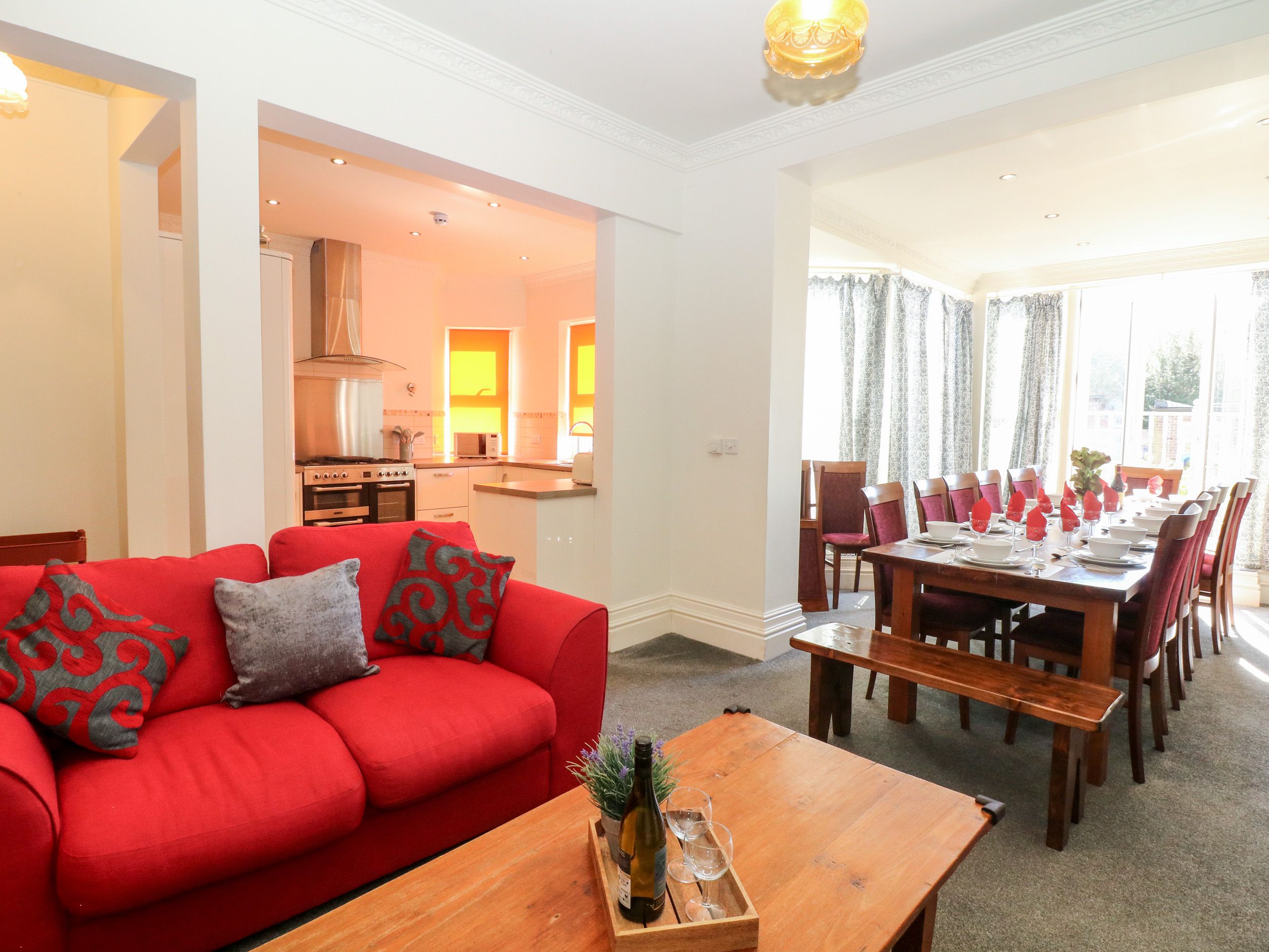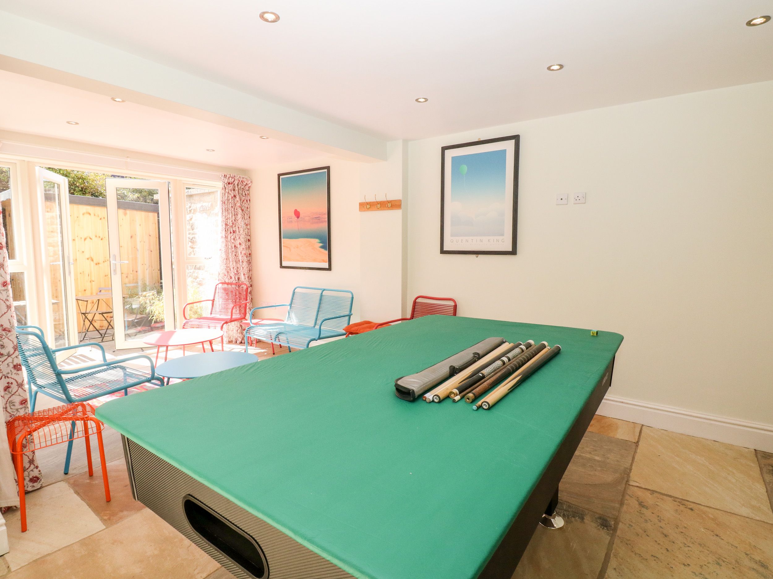 Holiday home Arlington House is a marvellous townhouse laid out over four floors and resting in the Peaks town of Matlock, Derbyshire. Hosting seven bedrooms, including two doubles and one twin on the third floor, along with a bathroom, one king-size (zip/link) and two doubles along with a bathroom on the second floor, and a ground-floor king-size (zip/link), with all of the bedrooms either benefited by an en-suite cloakroom or shower room, this property can sleep a total of fourteen guests. There is also an open-plan living space on the first floor containing the kitchen, dining area, and sitting area, while the ground floor is host to the games room which includes its own small kitchen space, sitting area with large TV, and various games including a pool table. Outside there is a terrace garden with a patio seating. Arlington House rests in a fabulous location for exploring the wondrous Peaks, and is blessed with plenty of room for all of your loved ones to come along and make some amazing memories in Derbyshire.