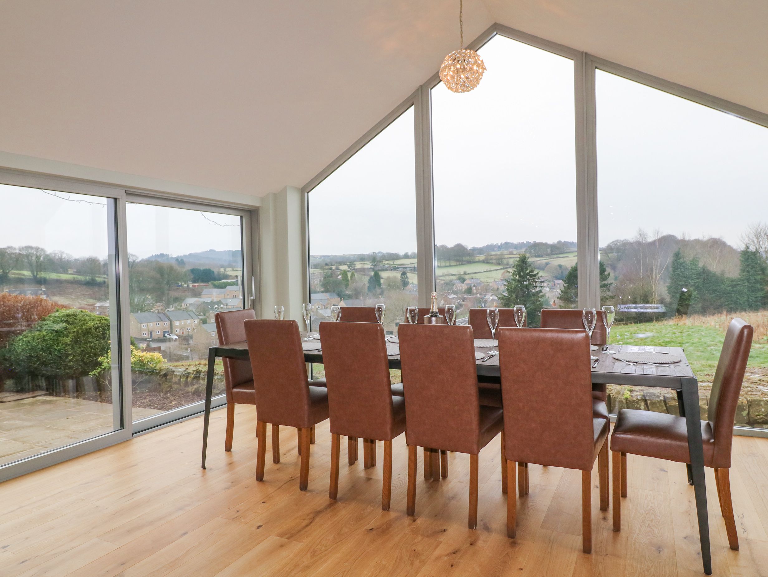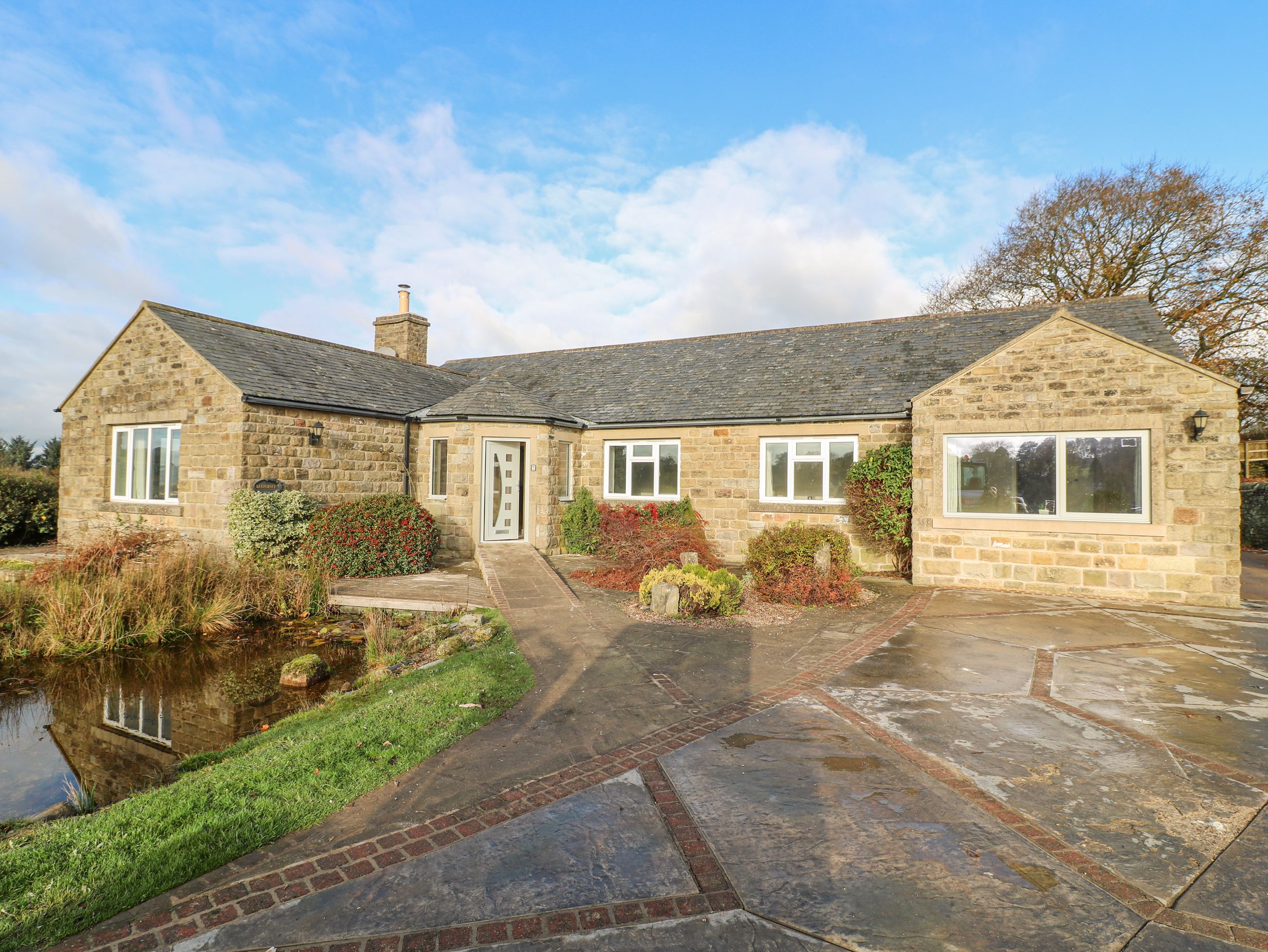 Holiday home Barncroft consists of a kitchen with oven, hob, microwave, fridge, fridge/freezer, washing machine, dryer, dishwasher and seating for four people, a dining room with seating for ten people and a wood burning stove, a sitting room with a Smart TV and woodburning stove, a utility and conservatory. The bedrooms consist of two family rooms with an en-suite, a twin room, and a king-size serviced by a bathroom. Outside there is patio, graveled, and lawned garden with furniture, hot tub, and parking for 6 cars. Three well-behaved dog welcome and sorry no smoking. Within 2 miles, you will find a shop and within 0.2 miles you will find a pub. WiFi, fuel, power, bed linen and towels are all included in the price. Barncroft is a luxury home perfect for exploring the Peak District.Note: There is an enclosed pond in the garden however please supervise children.