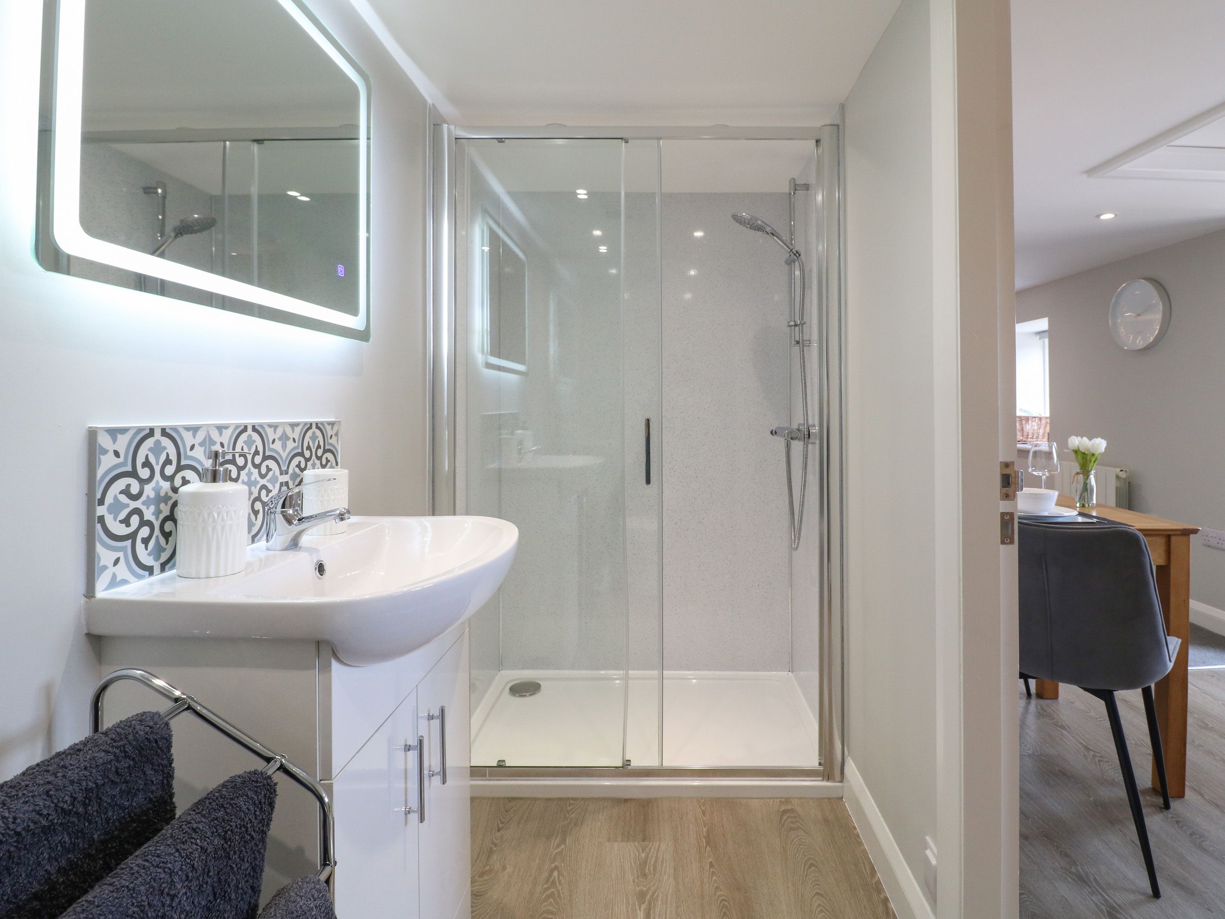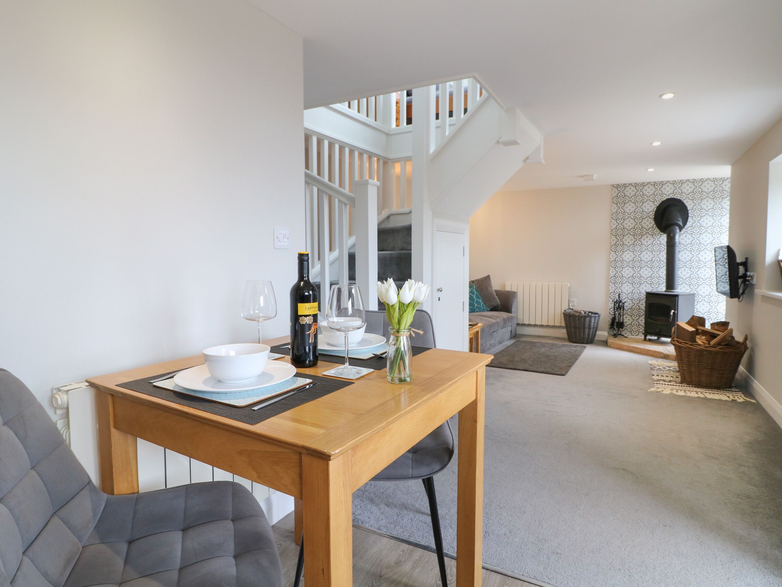 Accomodation Details One double bedroom with Juliet balcony. Ground-floor shower room with shower, basin and WC. Open-plan living space with kitchen, dining area and sitting area with woodburning stove