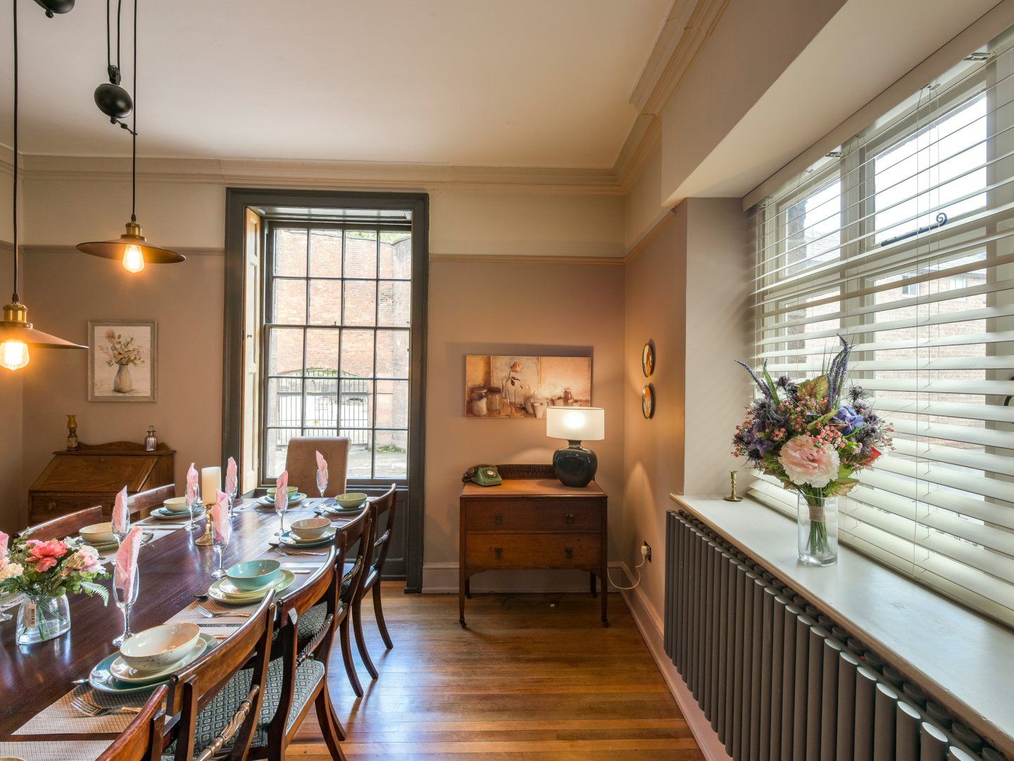 A large spacious house with spacious sloping garden, several well worn steep steps to house and garden. House is on a very busy and noisy main road but this quietens at night. Conveniently situated for the cromford mill and the wharf.