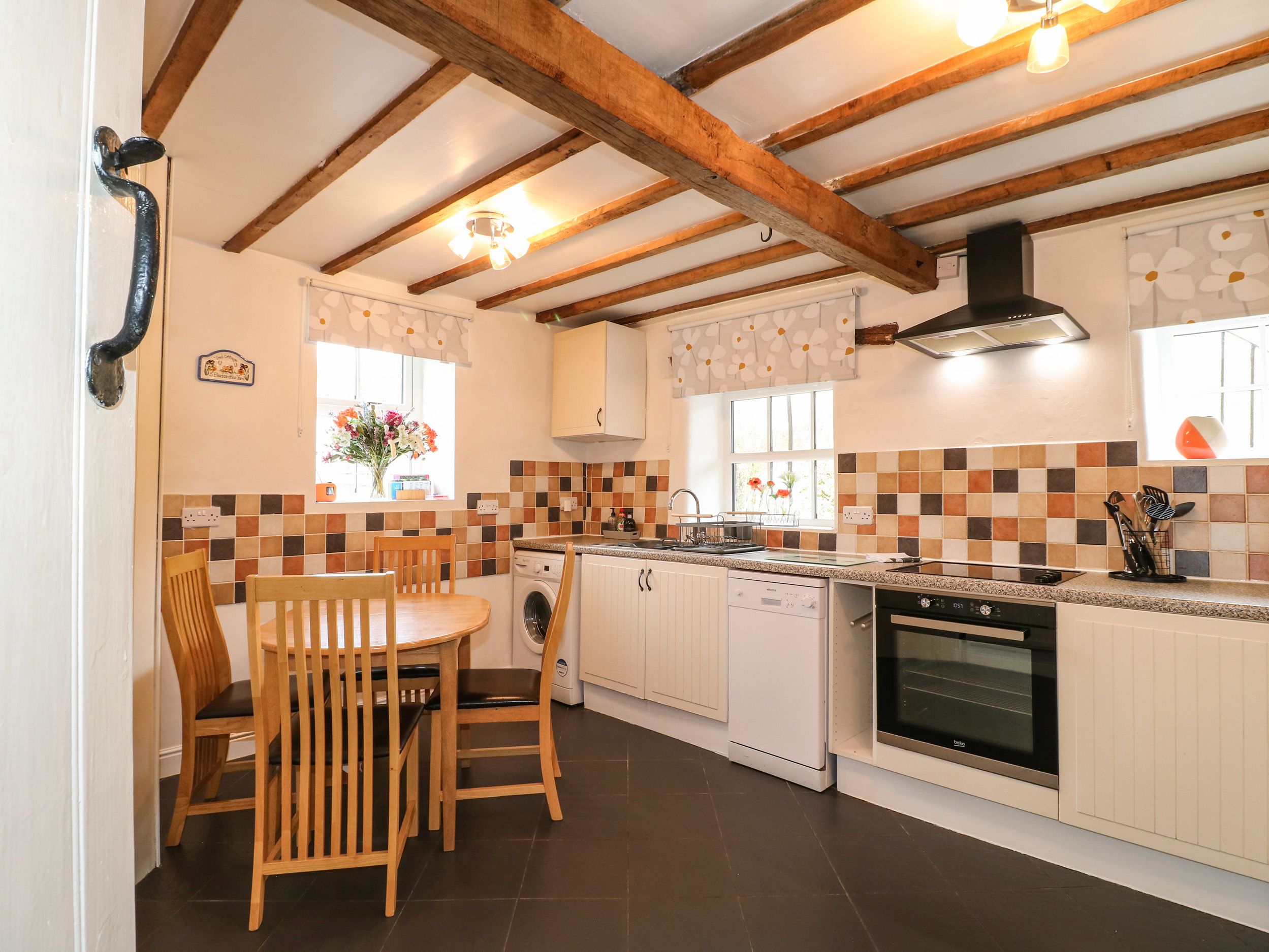 Amenities Gas central heating. Oven and hob, microwave oven, dishwasher, washing machine, TV, and WiFi. Fuel and power inc. in rent. Bed linen and towels inc. in rent.Cot and high chair available. Off-road parking for one car. Enclosed front garden with seating. Two well-behaved dogs welcome. Sorry, no smoking. Shop within 0.9 miles, pub within 0.3 miles. Note, There is a step down to the ground floor bedroom from the hall and a step up from the hall to the kitchen/dining area. Please note this property does not accept 1 night bookings.