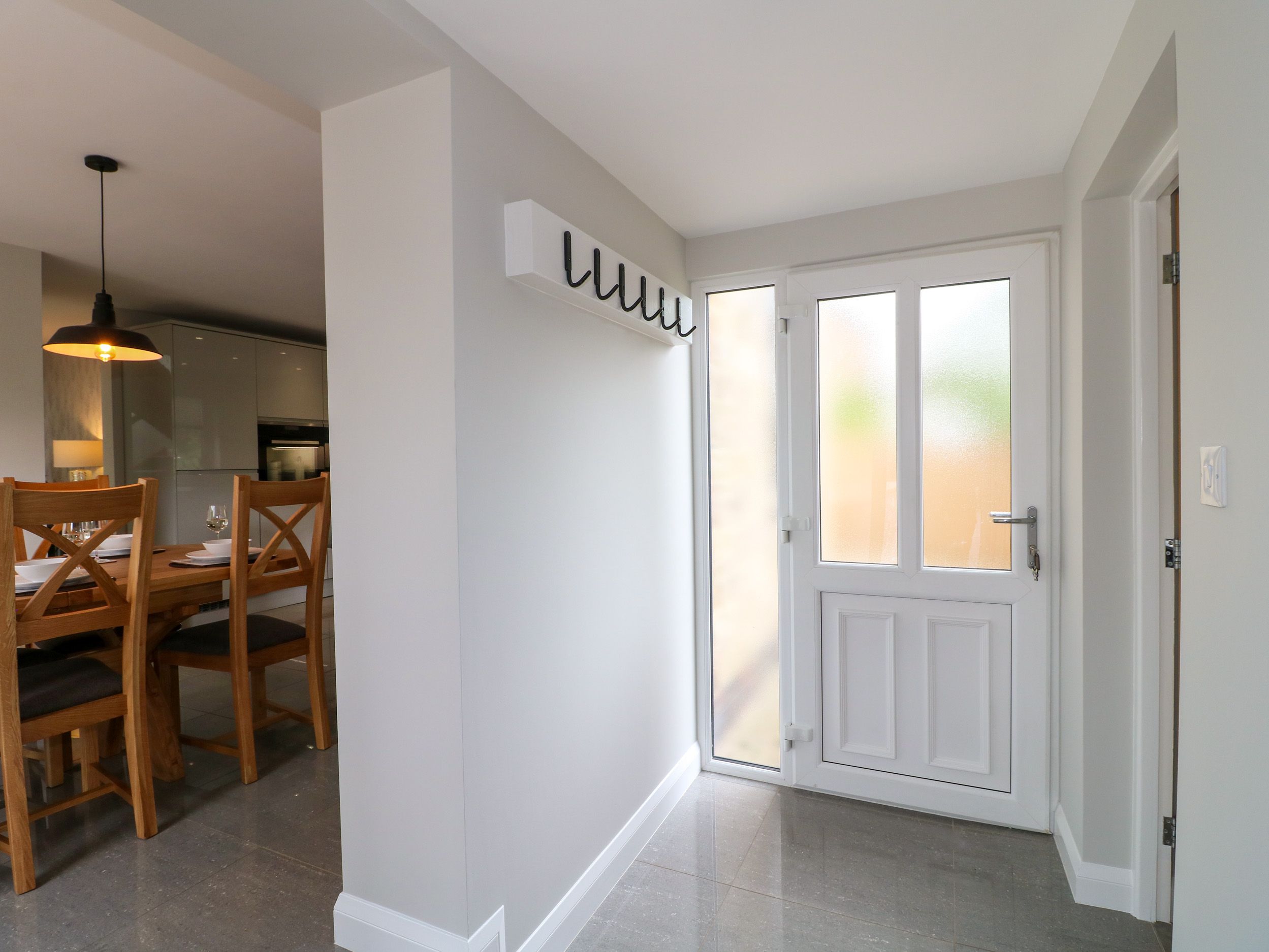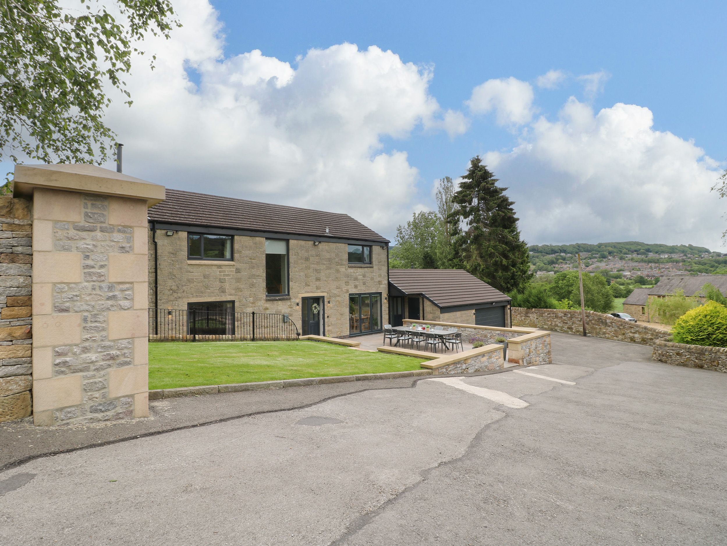 Amenities Oil and electric central heating with underfloor heating. 2 x ovens, induction hob, 2 x fridge/freezers, washing machine, dishwasher, tumble dryer, kettle, toaster. Smart TV, WiFi. Fuel and power inc. in rent. Bed linen and towels inc. in rent. Highchair and travel cot available. Off-road parking for 10 cars. Front garden with lawn, patio, and furniture. Enclosed side patio with hot tub. Lockable bike storage with lighting and Belfast sink, outside tap. Sorry, no pets and no smoking. Shop 1.6 miles, pub 2.1 miles. Note: The garage will be closed to guests