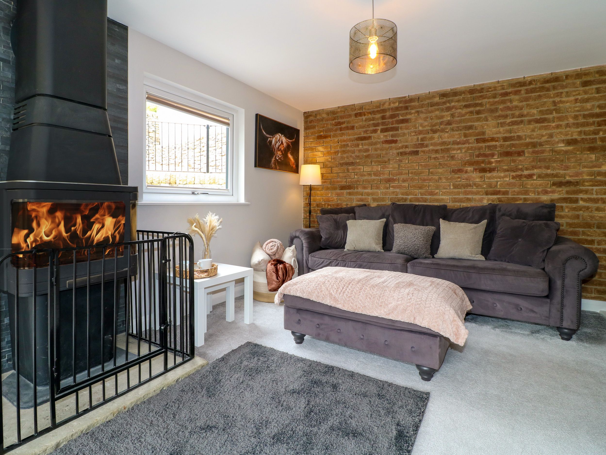 Holiday home Ty Gambo consists of a kitchen/diner with dining seating, a breakfast bar, 2 x oven, induction hob, fridge/freezer, dishwasher, kettle, and toaster, a utility with a fridge/freezer, washing machine and tumble dryer, and a sitting room with a Smart TV and woodburning stove. The bedrooms include a super-king-size with en-suite walk-in shower, basin, and heated towel rail and WC, two king-size, a ground-floor twin and a twin which are all serviced by a bathroom and cloakroom with basin and WC. Outside, there is a front garden with lawn, patio, and furniture, an enclosed side patio with hot tub and off-road parking for 10 cars. There is lockable bike storage with lighting and Belfast sink and an outside tap. Sorry, no pets and no smoking at this property. Highchair and travel cot available. Guests can find a shop in 1.6 miles and a pub in 2.1 miles. WiFi, fuel, power, bed linen and towels are all included in the price. Have a memorable stay at Ty Gambo. Note: The garage will be closed to guests. Please note:This is pet free property.