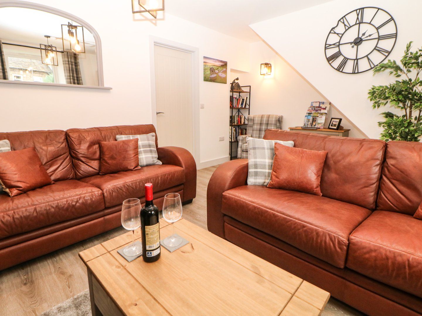 Accomodation Details Over three floors. Three bedrooms: 1 x king-size with TV, 1 x double with TV and en-suite walk-in shower, basin, heated towel rail and WC, 1 x second-floor twin with TV. Bathroom with bath, walk-in shower, basin, heated towel rail, and WC. Kitchen/diner. Sitting room with woodburning stove