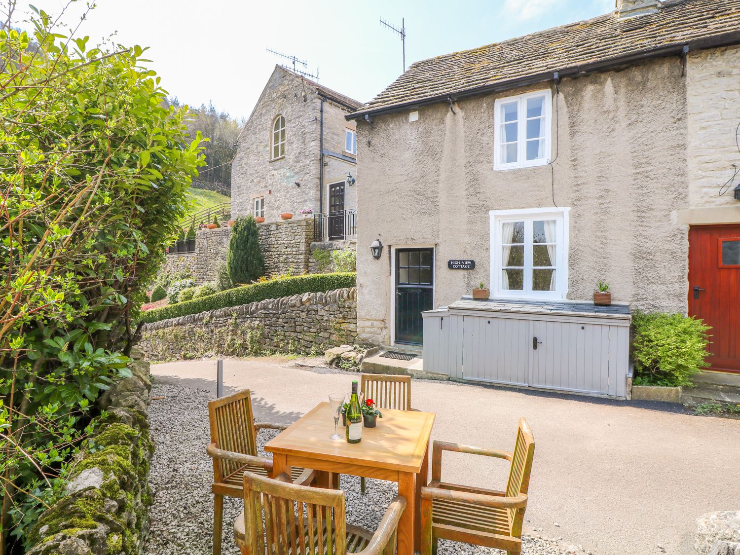 Holiday home High View Cottage is a wonderful stone cottage situated in Castleton, Peak District. It has one king-size bedroom with an en-suite shower room. Downstairs offers an open-plan living room with a fitted kitchen, dining area and sitting area with a woodburning stove and a sofa bed. Outside has a shared front, stone area with furniture. Permit parking is available in nearby car park. High View Cottage is the ultimate choice for a relaxing break to the countryside.Two well-behaved dogs welcome. Cats are not allowed.