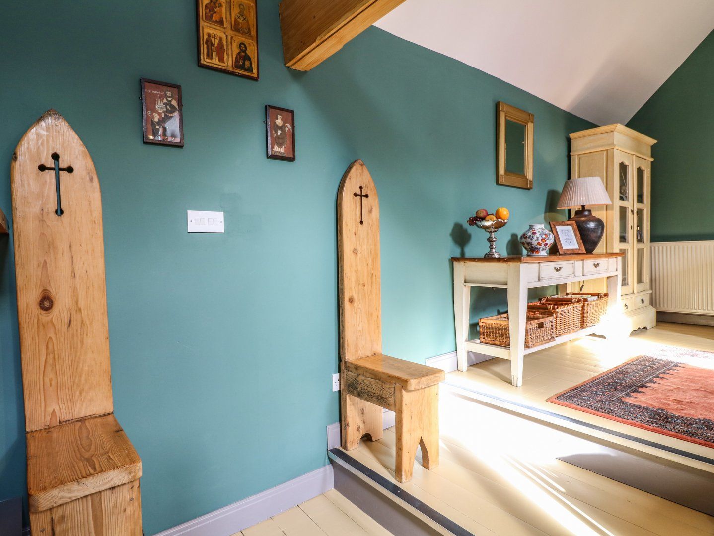 Amenities Gas central heating. Electric oven and hob, microwave, fridge, washing machine, dishwasher. Smart TV, WiFi. Fuel and power inc. in rent. Bed linen and towels inc. in rent. Travel cot, highchair and stairgate available. On-street parking. Enclosed private courtyard with patio and furniture. Sorry, no pets and no smoking. Shop 1.3 miles, pub 0.2 miles. Note: This property does not accept stag, hen or similar parties. Note: There is an additional step up at the top of the stairs