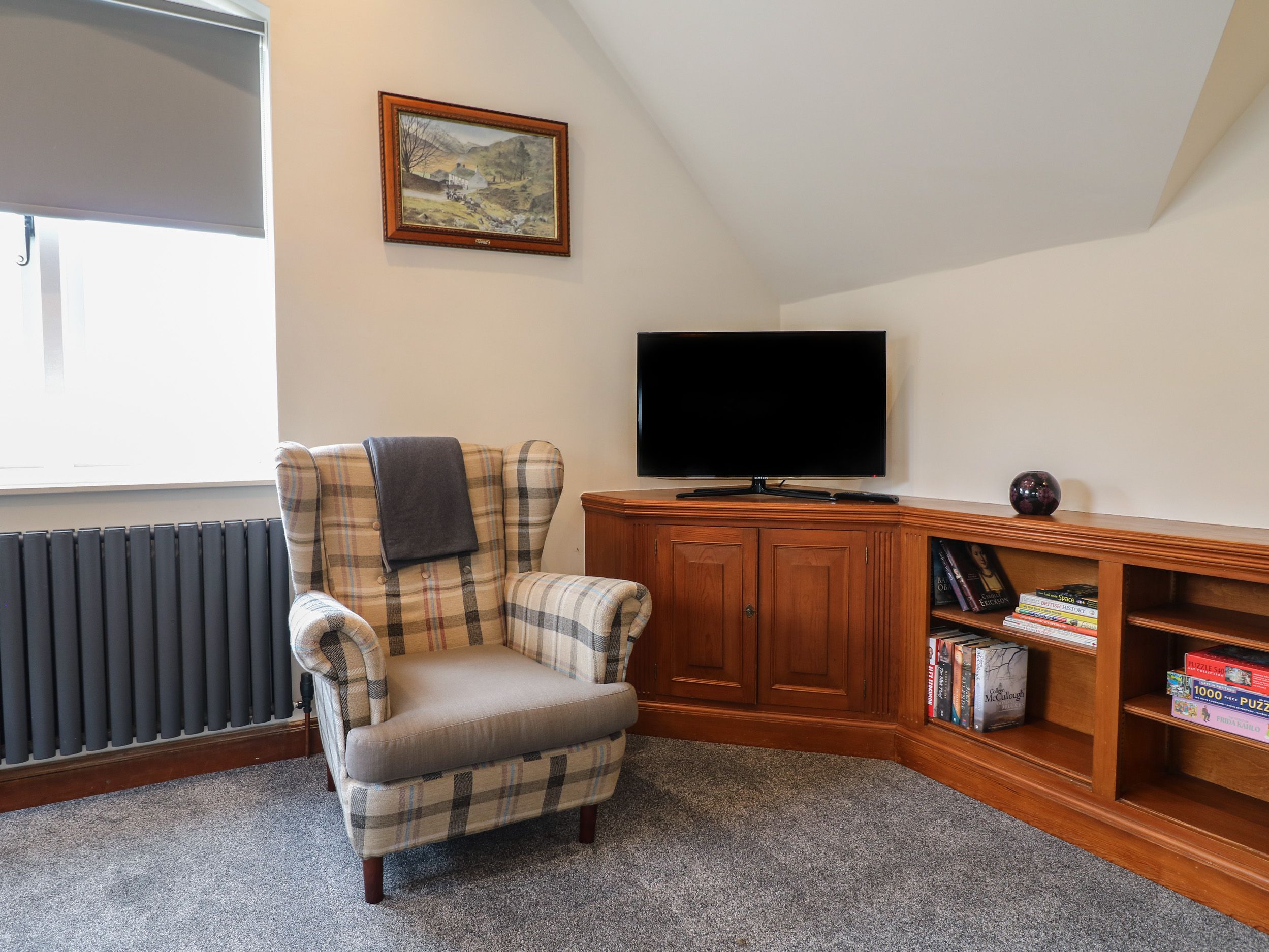 Gas central heating. Electric oven, induction hob, microwave, fridge/freezer, washer/dryer, slimline dishwasher, coffee maker, kettle, toaster. Smart TV with Netflix and prime video, WiFi, selection of books and games. Fuel and power inc. in rent. Bed linen and towels inc. in rent. Travel cot and highchair available. Ample off-road parking. Sorry, no pets and no smoking. Shop 1.8 miles, pub 1.2 miles, river 1.3 miles. Note: Use of communal tennis court. Note: Steps up to property. Note: Sofa bed will allow the property to sleep three adults or two adults and two children maximum