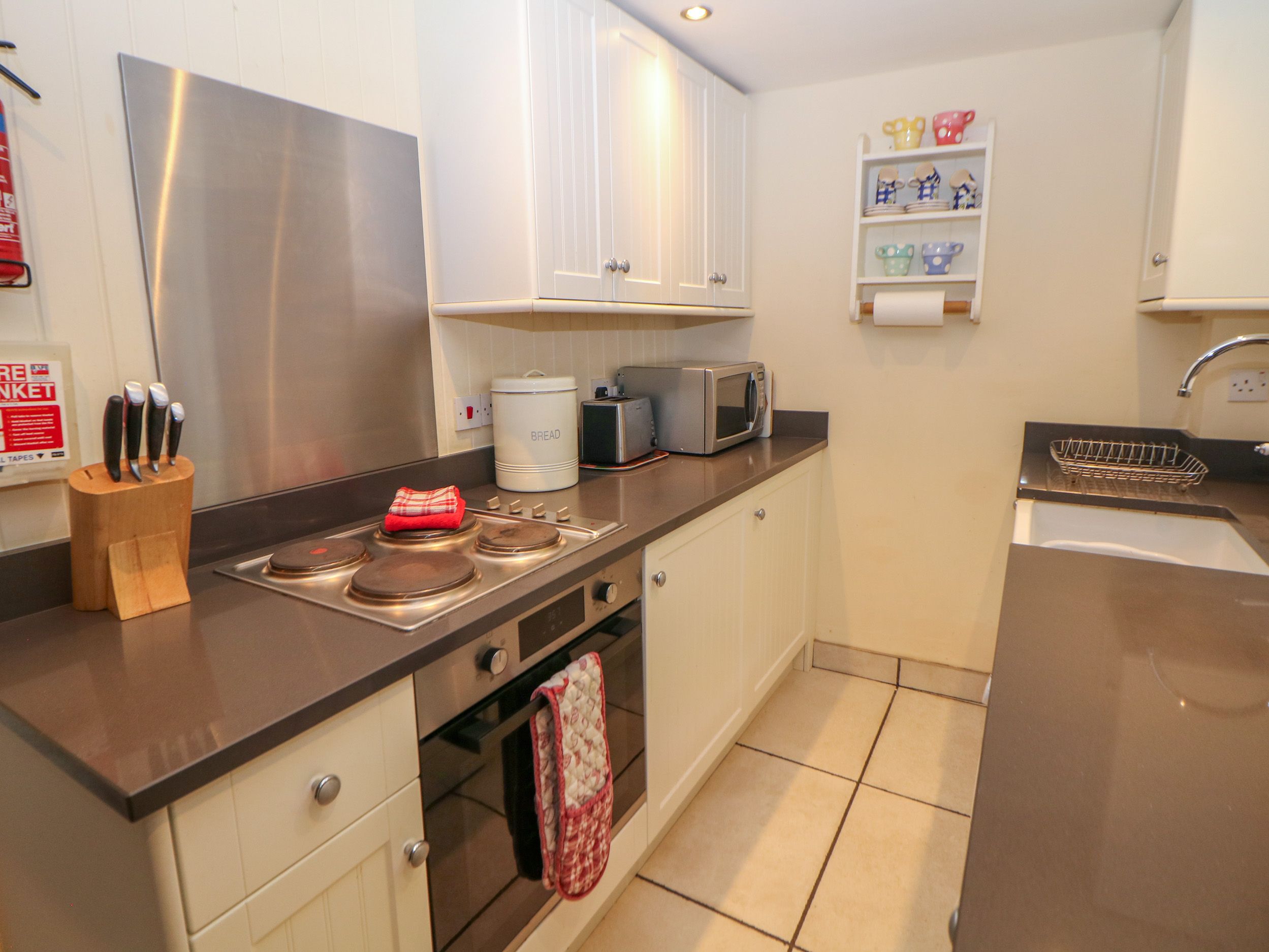 Holiday home Queen's Cottage consists of a kitchen/diner with electric oven and hob, microwave, fridge/freezer, washing machine, dishwasher, and kettle and toaster, a sitting room with smart TV and woodburning stove, and a cloakroom. The bedrooms consist of two doubles, ground-floor single, and single. There is a bathroom with bath and shower over, basin, and heated towel rail and WC. Outside, there is an enclosed rear garden with terrace and furniture and roadside parking. Sorry, no pets and no smoking. Shop 0.2 miles and pub 0.1 miles. WiFi, fuel, power, bed linen and towels are all included in the price. Enjoy your trip to Queen's Cottage. Note: There are steps up to the garden. Note: There are two steps down to the single room and bathroom on the first floor.