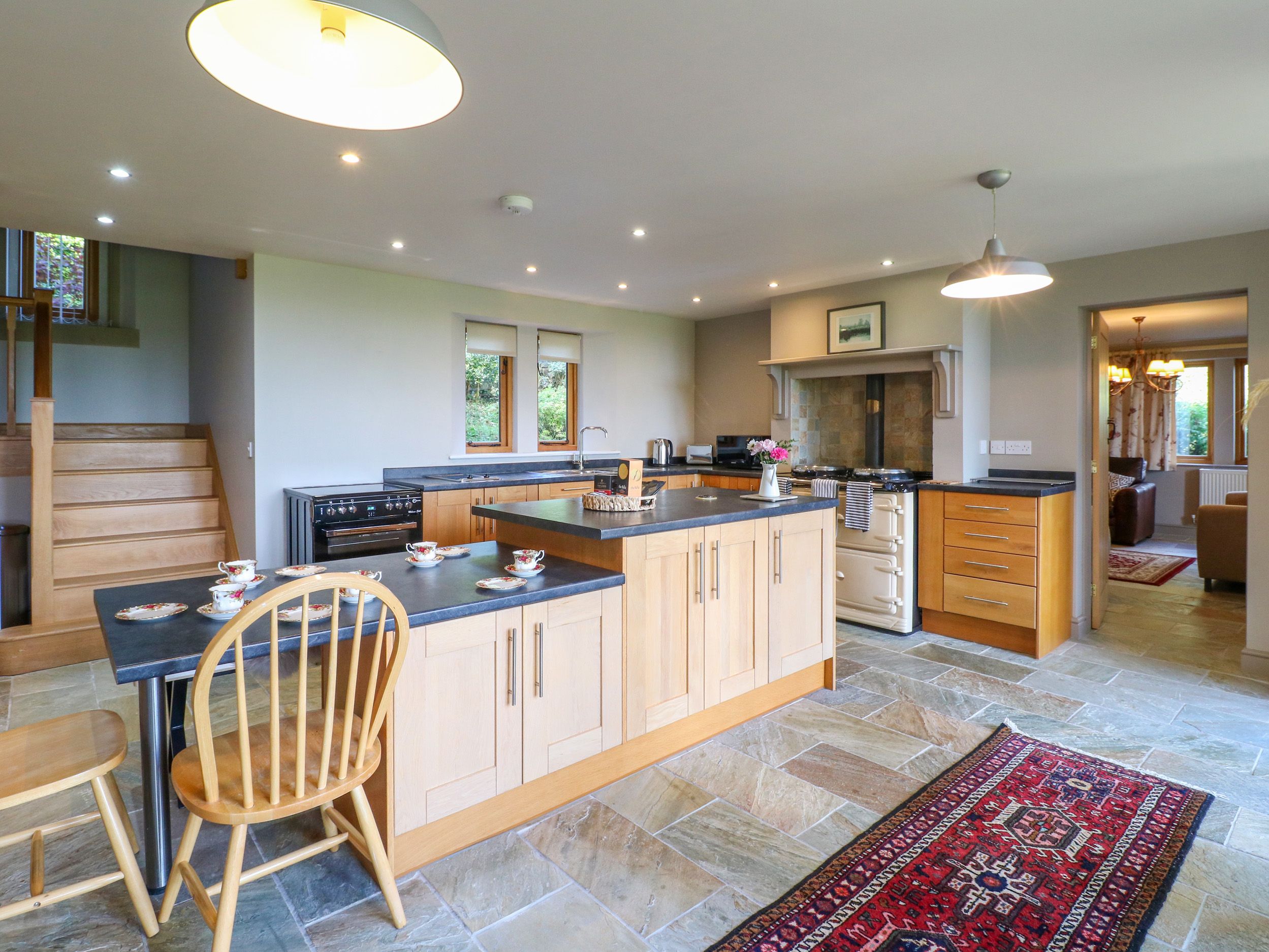 Amenities Oil central heating. AGA cooker, electric cooker, oven, hob, microwave, fridge, freezer, washing machine, dishwasher. Smart TV, WiFi. Fuel, power, and starter pack for woodburning stove inc. in rent. Bed linen and towels inc. in rent. Highchair and travel cot available. Private, off-road parking for 8 cars. Wraparound garden with patio, gravel, furniture and countryside views. Sorry, no pets and no smoking. Shop 2.5 miles, pub 1.1 miles, river 1 mile. Note: Ground-floor shower room is accessed via the utility