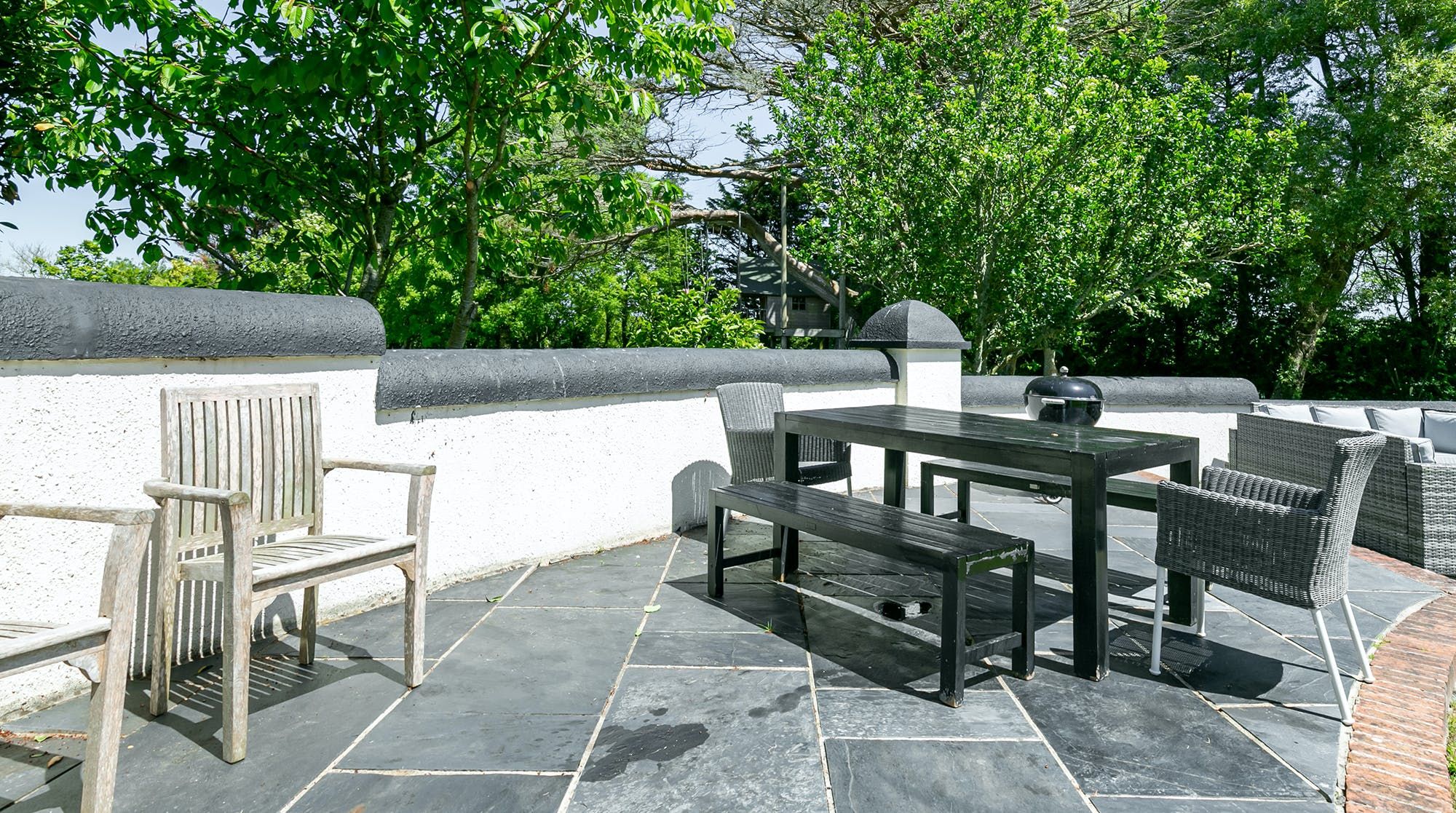 Tucked away along a country lane, this home emphasises character while incorporating modern spaces for ultimate comfort – we adore the timeless tones throughout, especially the teal that adds glimpses of colour. Wake up in the morning, and if you're staying in the master bedroom, enjoy a soothing moment in the bath, overlooking Lundy Island – the perfect way to start the day. As the afternoon rolls around, try out the pizza oven for a bite to eat outside while admiring the flora that surrounds you, as the kids run around having the time of their lives.