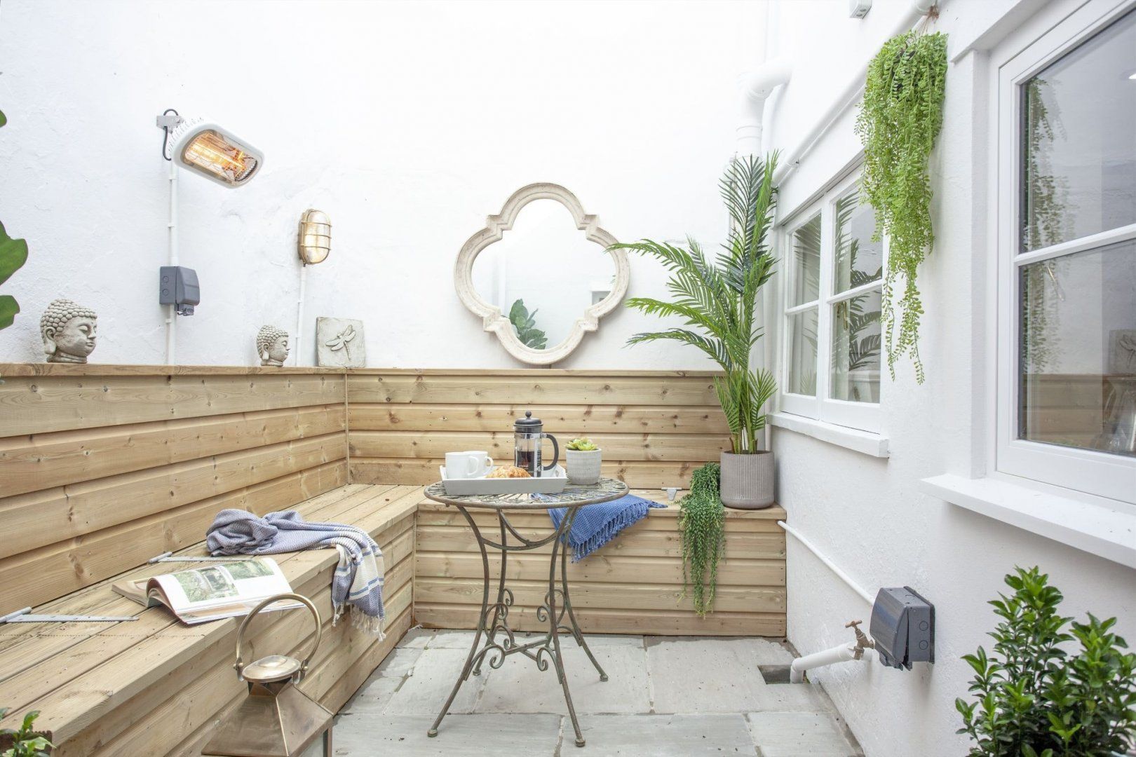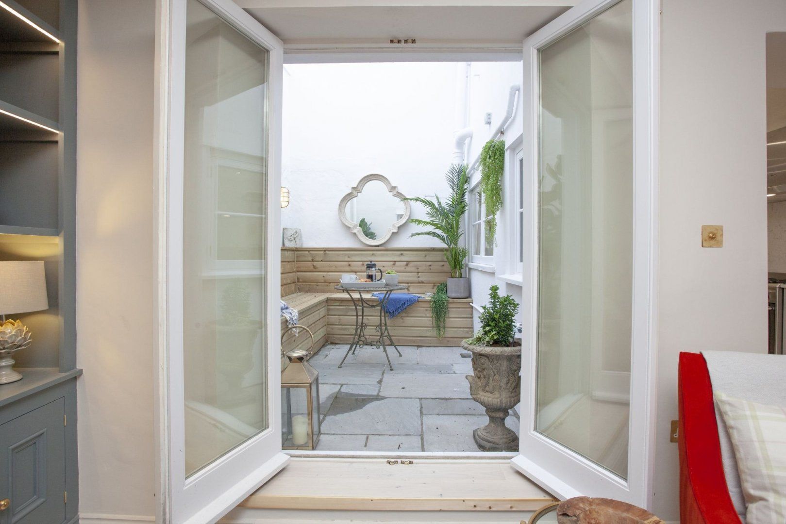 On the ground level, the plush lounge has a fireplace for snuggling up on chilly English evenings, while the French doors open up to a heated courtyard which is simply divine – we can't think of a better spot to while away summer evenings, sipping wine and nibbling on snacks rustled up in the glossy kitchen.