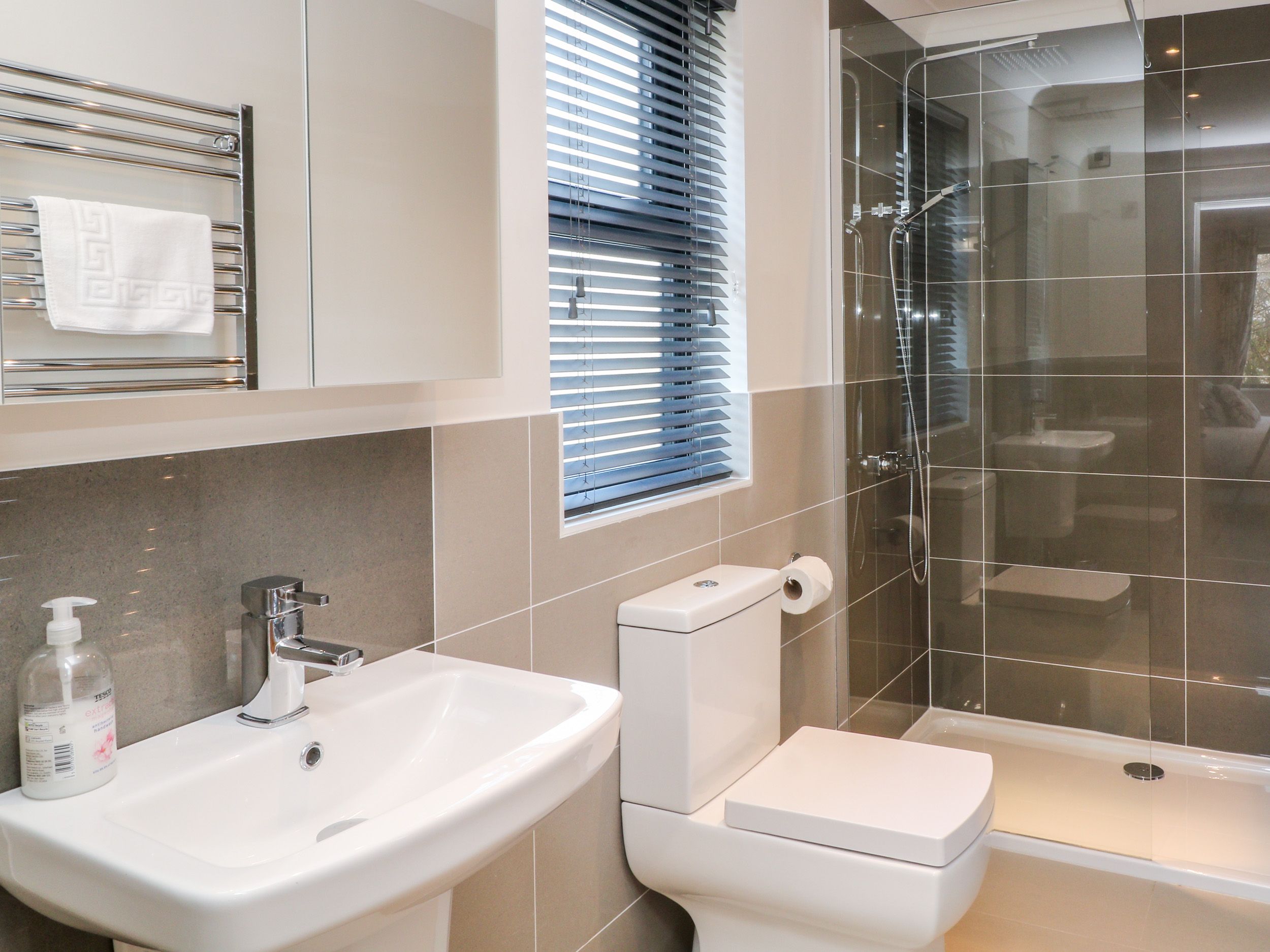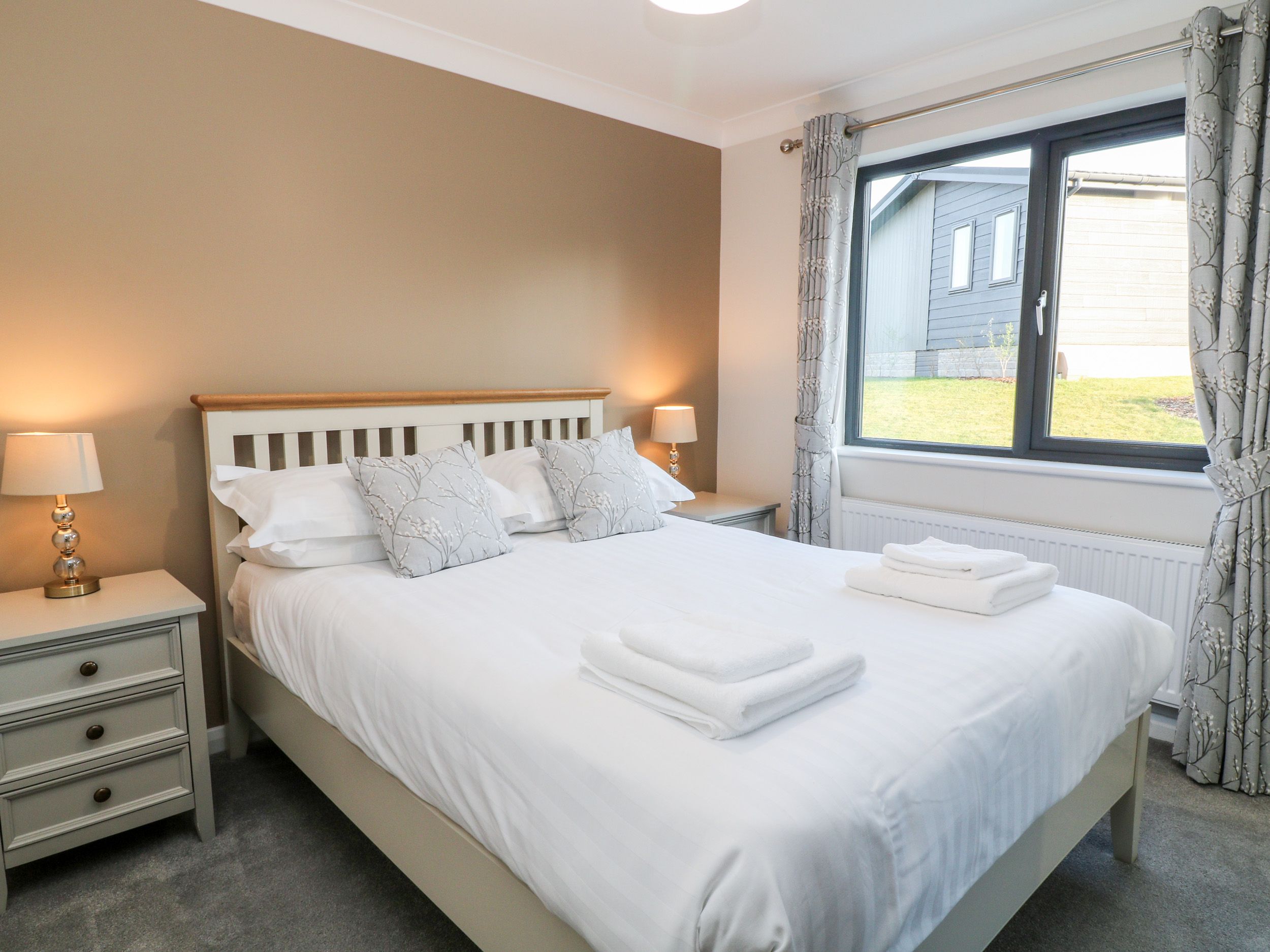 Accomodation Details Single-storey. Four bedrooms: 1 x king-size with Smart TV, 1 x double with Smart TV and en-suite walk-in shower, basin, heated towel rail and WC, 1 x twin, 1 x bunk. Bathroom with bath, shower over, basin, heated towel rail and WC. Open-plan living space with kitchen, dining area and sitting area