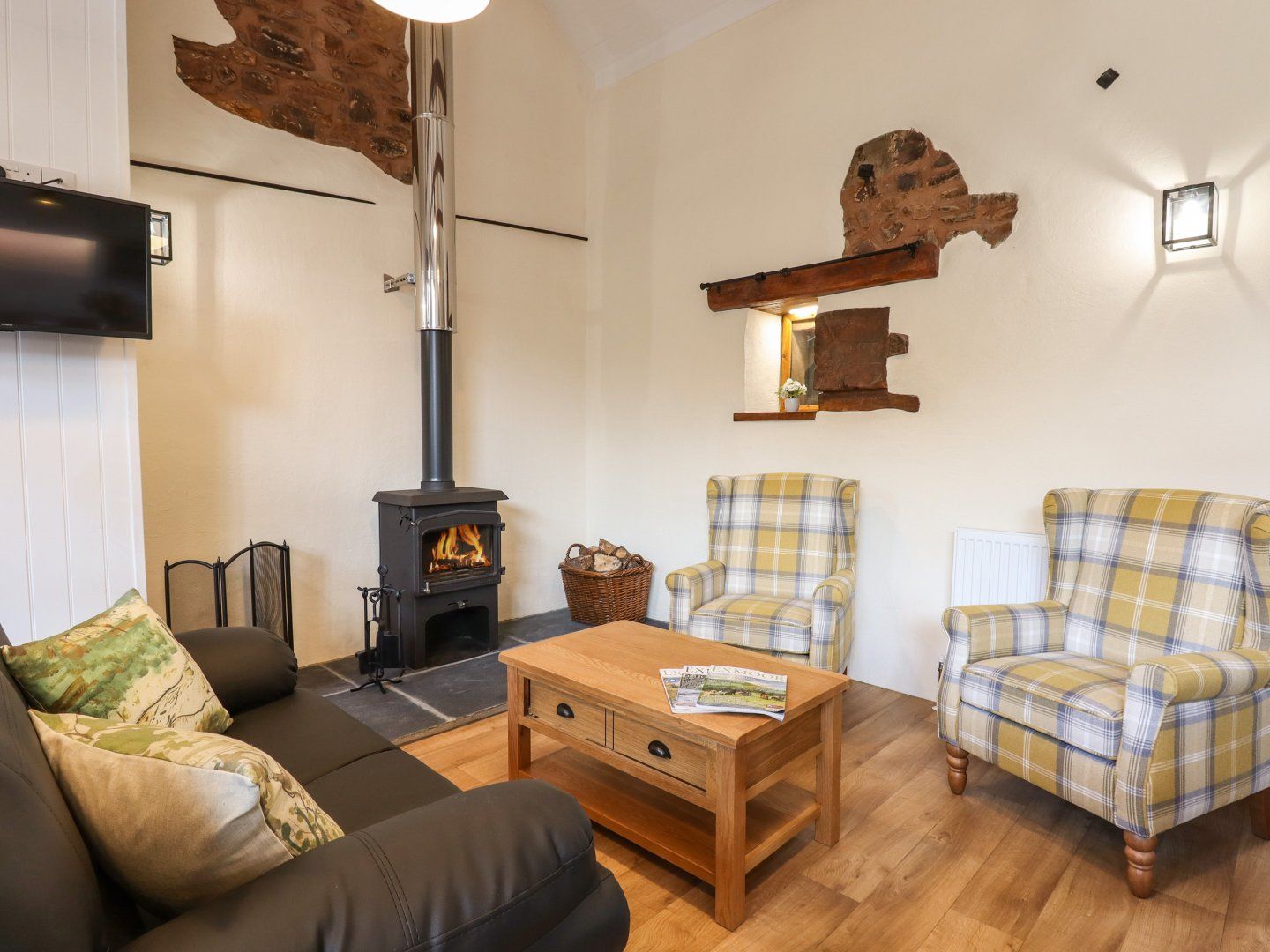 Amenities Oil central heating with woodburning stove. Electric Everhot oven with hob, plus induction hob, microwave, fridge/freezer, washing machine, 3/4 dishwasher, and BBQ. Smart TV, 2 x TV, WiFi. Fuel, power and starter pack for woodburning stove inc. in rent. Bed linen and towels inc. in rent. Travel cot available on request. Off-road parking for 2 cars. Rear enclosed courtyard with furniture. Two well-behaved dogs welcome (£25 charge per week for 2nd dog). Sorry, no smoking. Shop 4.8 miles, pub 0.1 miles . Please note: Christmas and New Year 2024 will have a Friday changeover, If you are interested in booking one of the weeks please contact us.