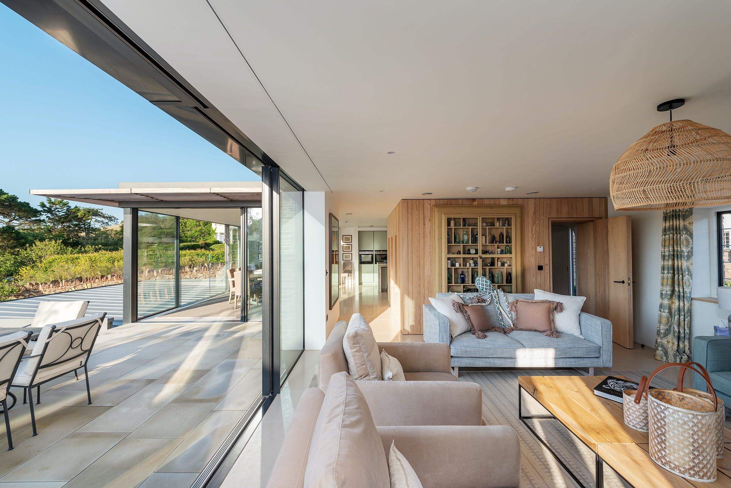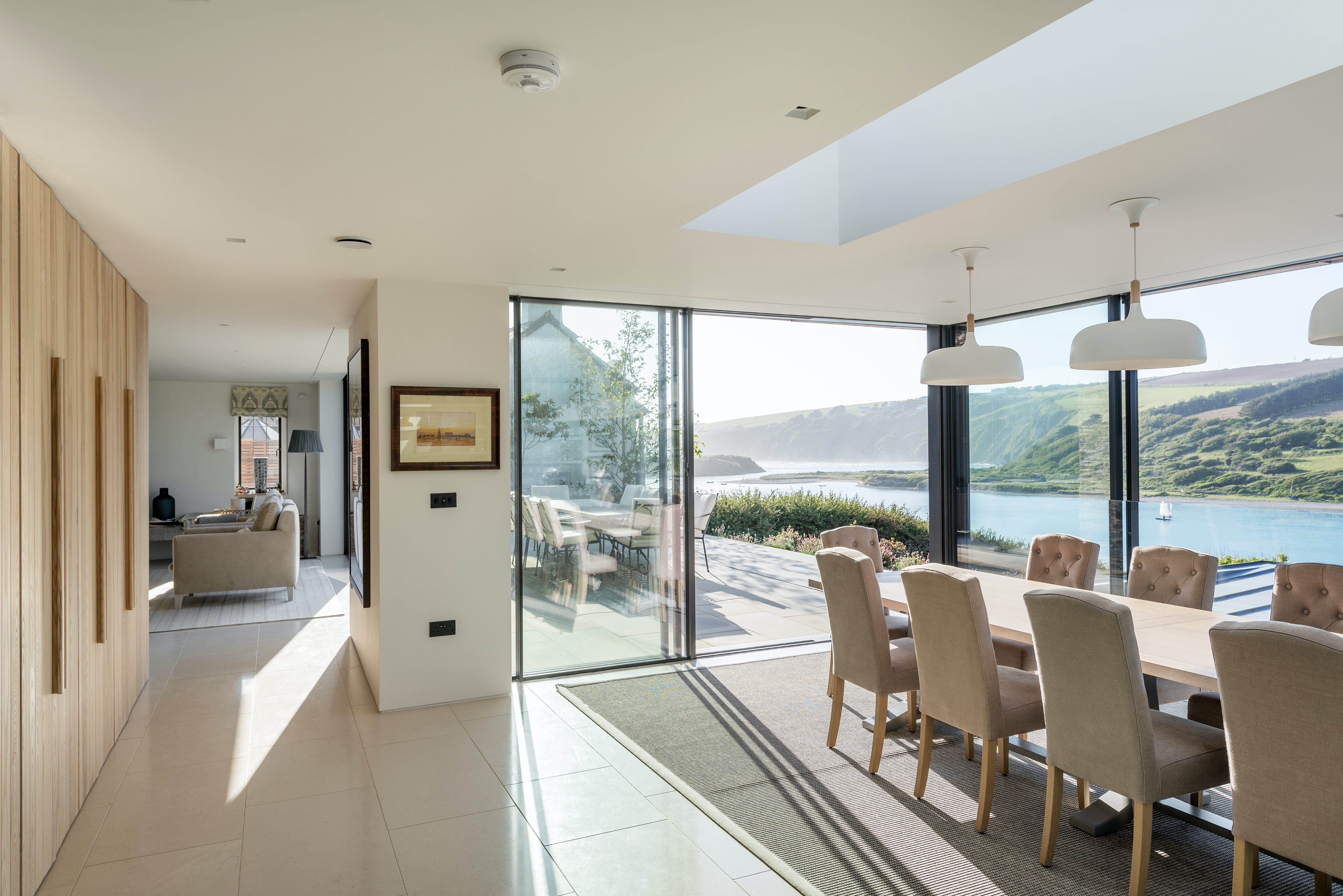 With uninterrupted views of the river and rolling countryside, and the beach just a stone's throw from the beach, this striking holiday hideaway is the perfect place for family trips or escaping with a group of friends. Sleeping up to ten people, this spacious, light, and elegant property makes the most of its location, with floor-to-ceiling windows, elegant ash floors, and a barefoot luxury feel throughout. You're within easy walking distance of Bantham Beach – perfect for sunny summer days and pumping surf sessions in the spring and autumn. The Gastrobus is on hand for warming post-dip coffees and locally sourced street food, and there's a charming fourteenth-century pub just up the road. Back home, after stowing your surfboards and rinsing off your gear under the outdoor hose, you can enjoy direct access to the outdoors from the open living area and the master bedroom on the lower ground floor. There's plenty of space out here for alfresco feasts and sunbathing sessions, plus private access to the estuary for Blyton-esque riverside adventures for the kids. For a change of scenery, head to well-heeled Salcombe to spend a day sailing on the estuary, creating your own personalised gin and dining in waterside brasseries – it's a twenty-minute drive away.