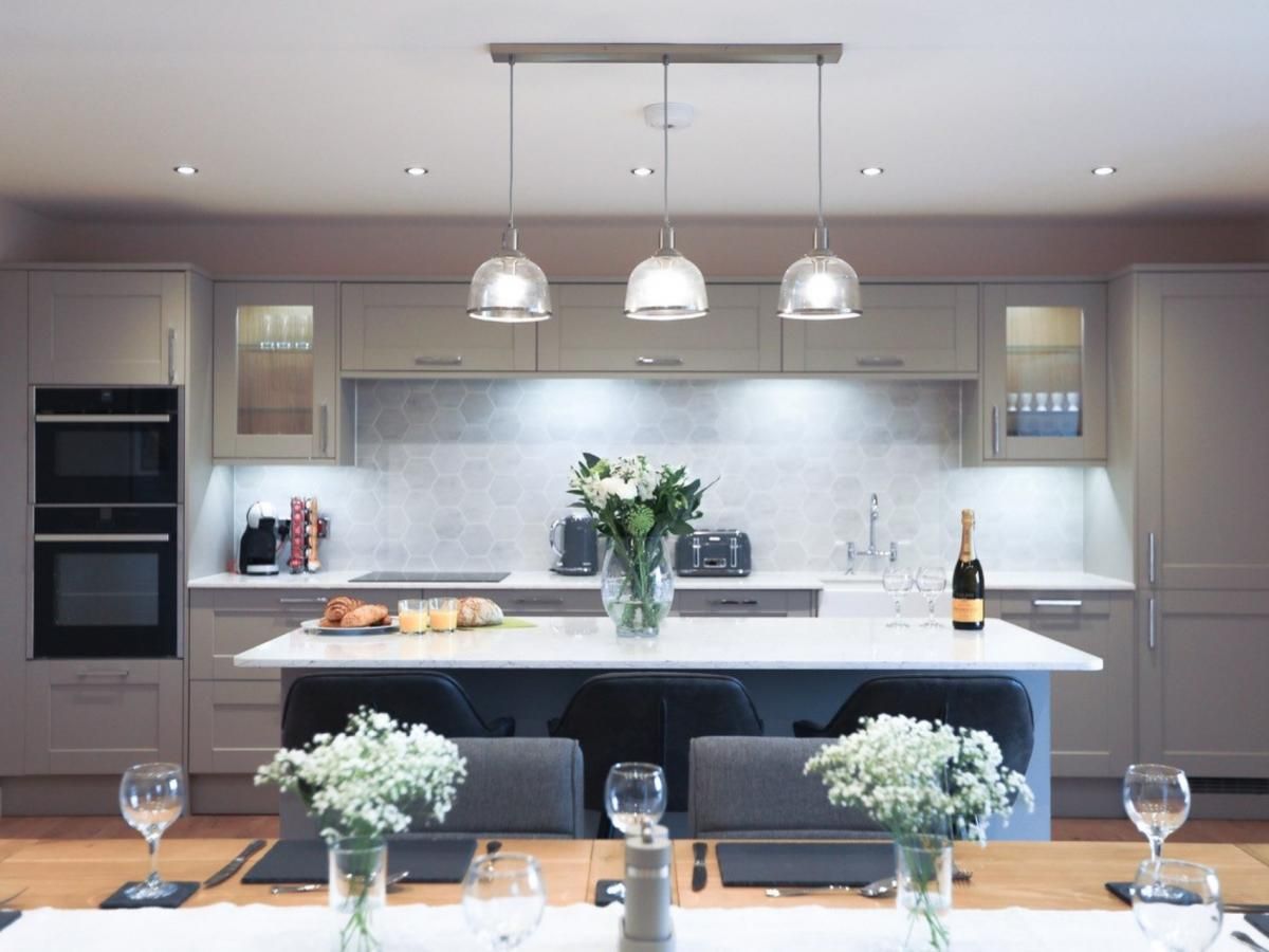 With a bright inner hallway leading off to open-plan living areas, access to a private children’s play area, underfloor heating downstairs and en-suite bedrooms up above, attention has been paid to every detail in an effort to create both a restful and practical environment. Gather for memorable family feasts in the spacious kitchen/diner, a naturally-lit space that leads into the garden, with a handy utility room discreetly positioned on one side.