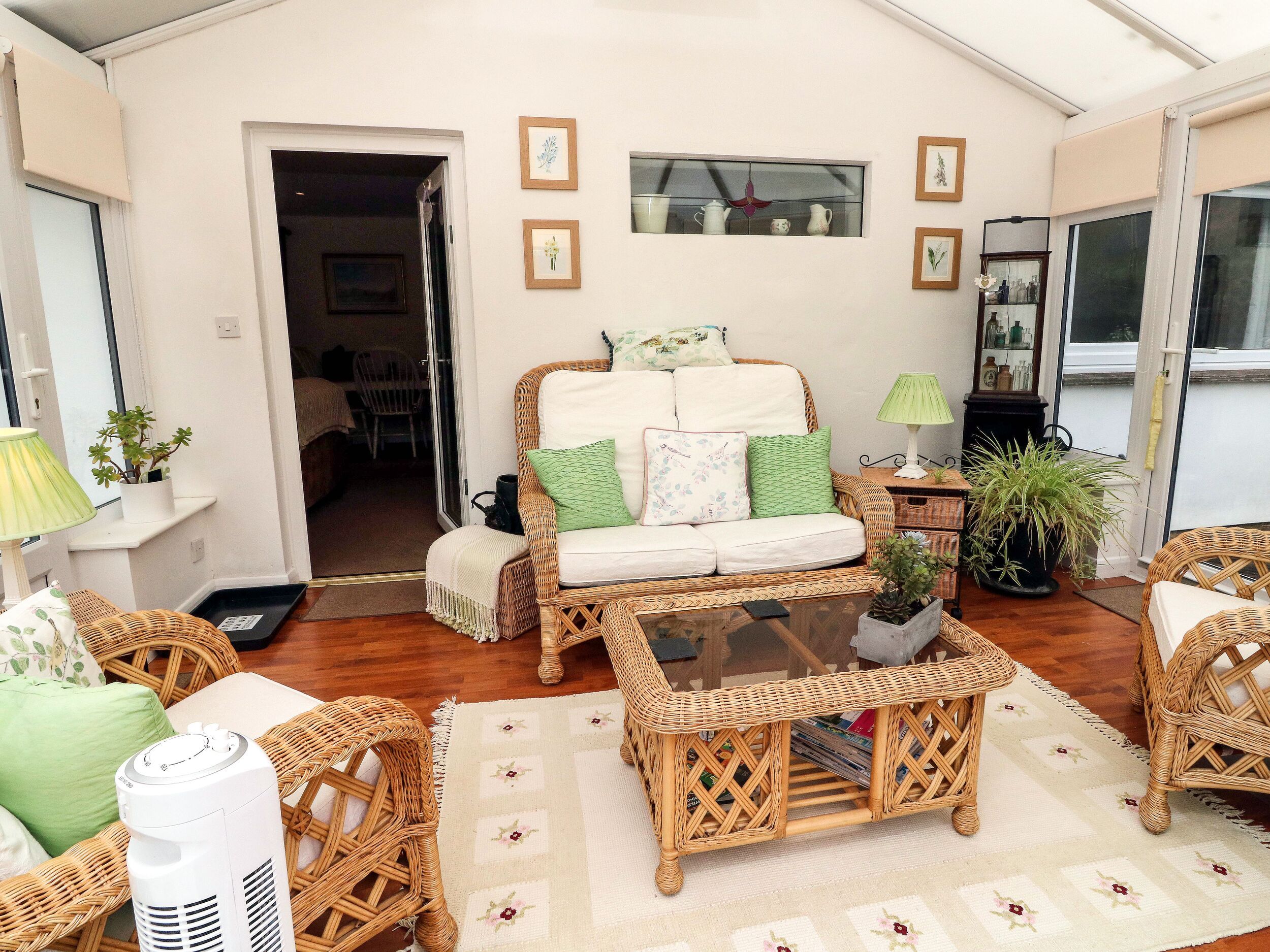 Single-storey. One super-king-size bedroom (zip/link, can be a twin on request) with en-suite walk-in shower, basin, and WC. Kitchen. Living/dining room with electric fire. Conservatory
