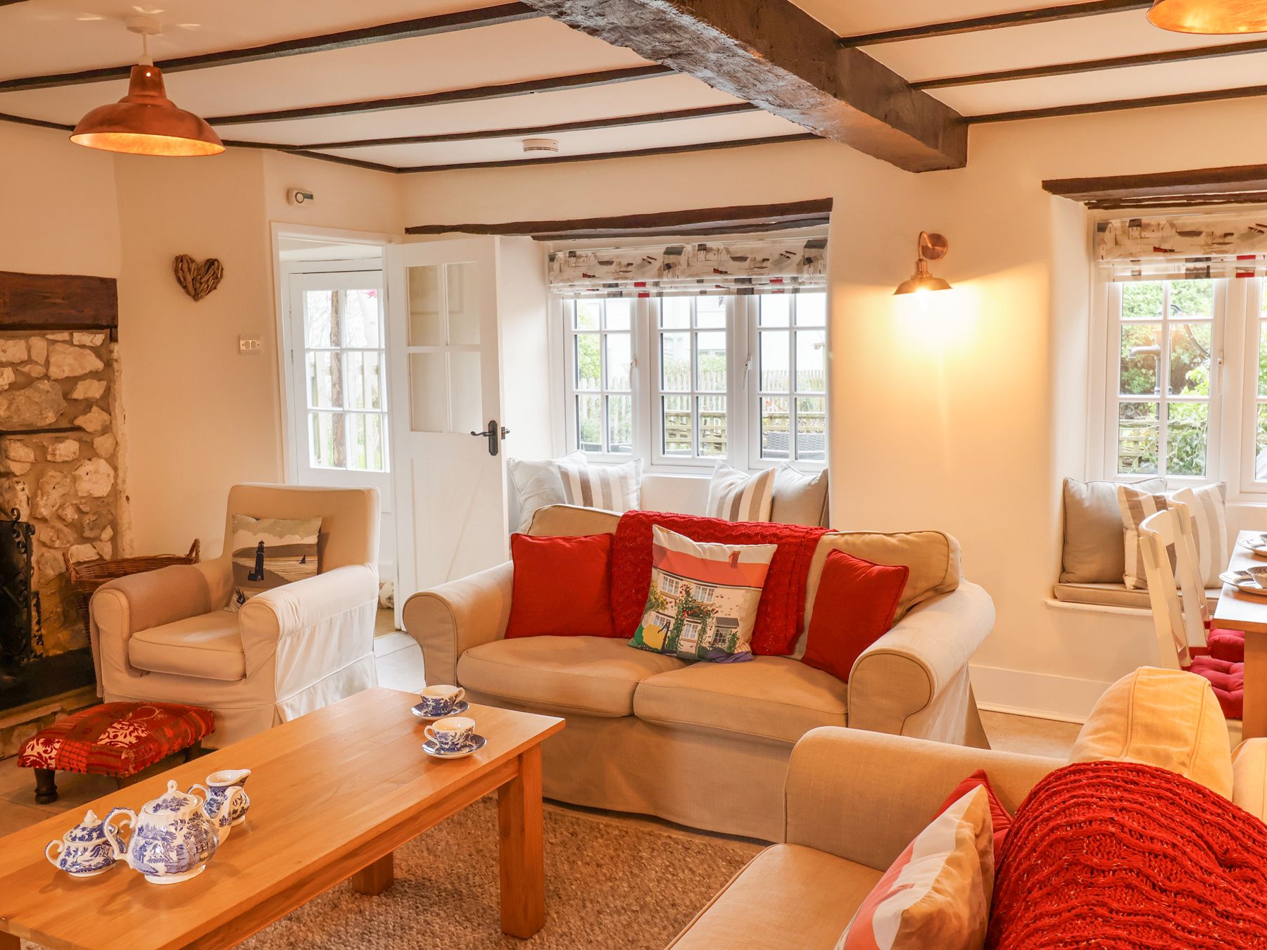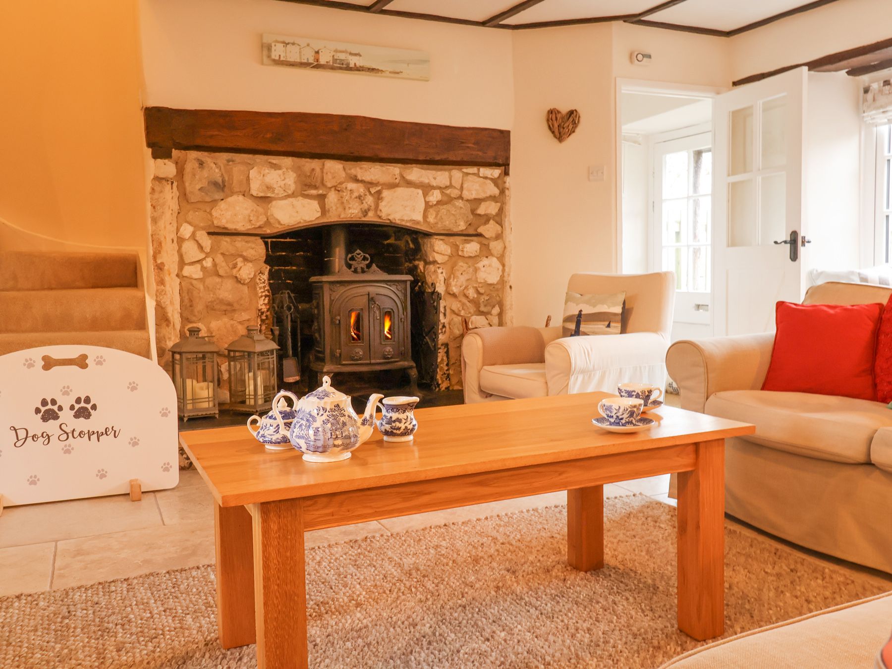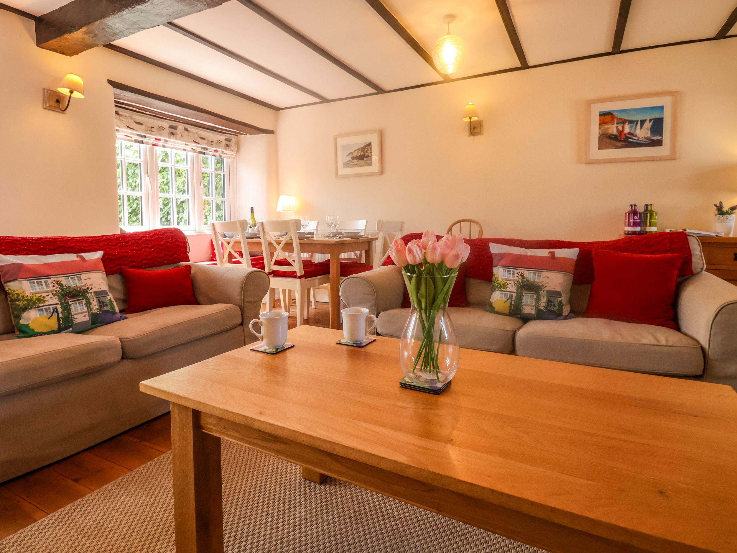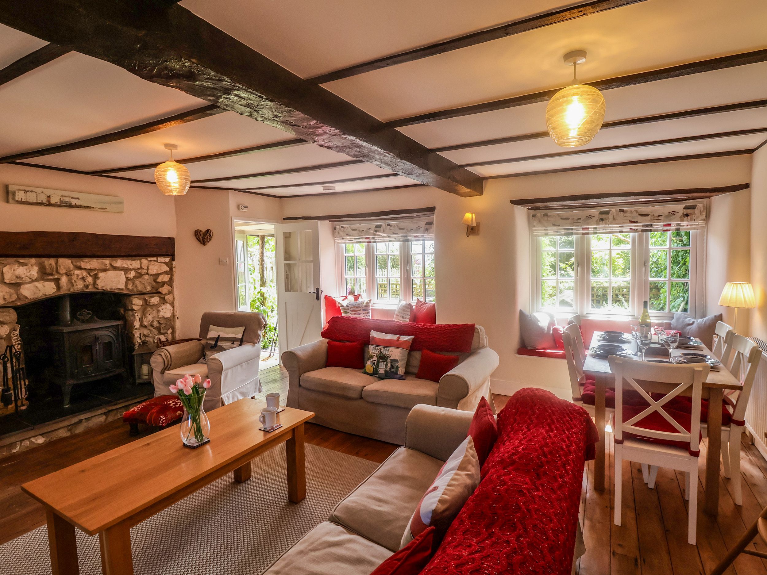 Amenities Gas heating with open fire. Electric oven, gas hob, microwave, fridge/freezer, washing machine, dishwasher. 2 x TV, Amazon Firestick, Bluetooth soundbar, WiFi. Fuel and power inc. in rent. Bed linen and towels inc. in rent. Highchair and travel cot available, linen not incl. Off-road parking for 1 small car. Enclosed garden with patio, shrubs, lawn and furniture. Pet-friendly, sorry, no smoking. Shop 0.2 miles, pub 0.2 miles. Note: Maximum of 2 dogs accepted. Note: Off-road parking for 1 small car (one parking permit provided for EDDC car park opposite cottage for longer vehicles)