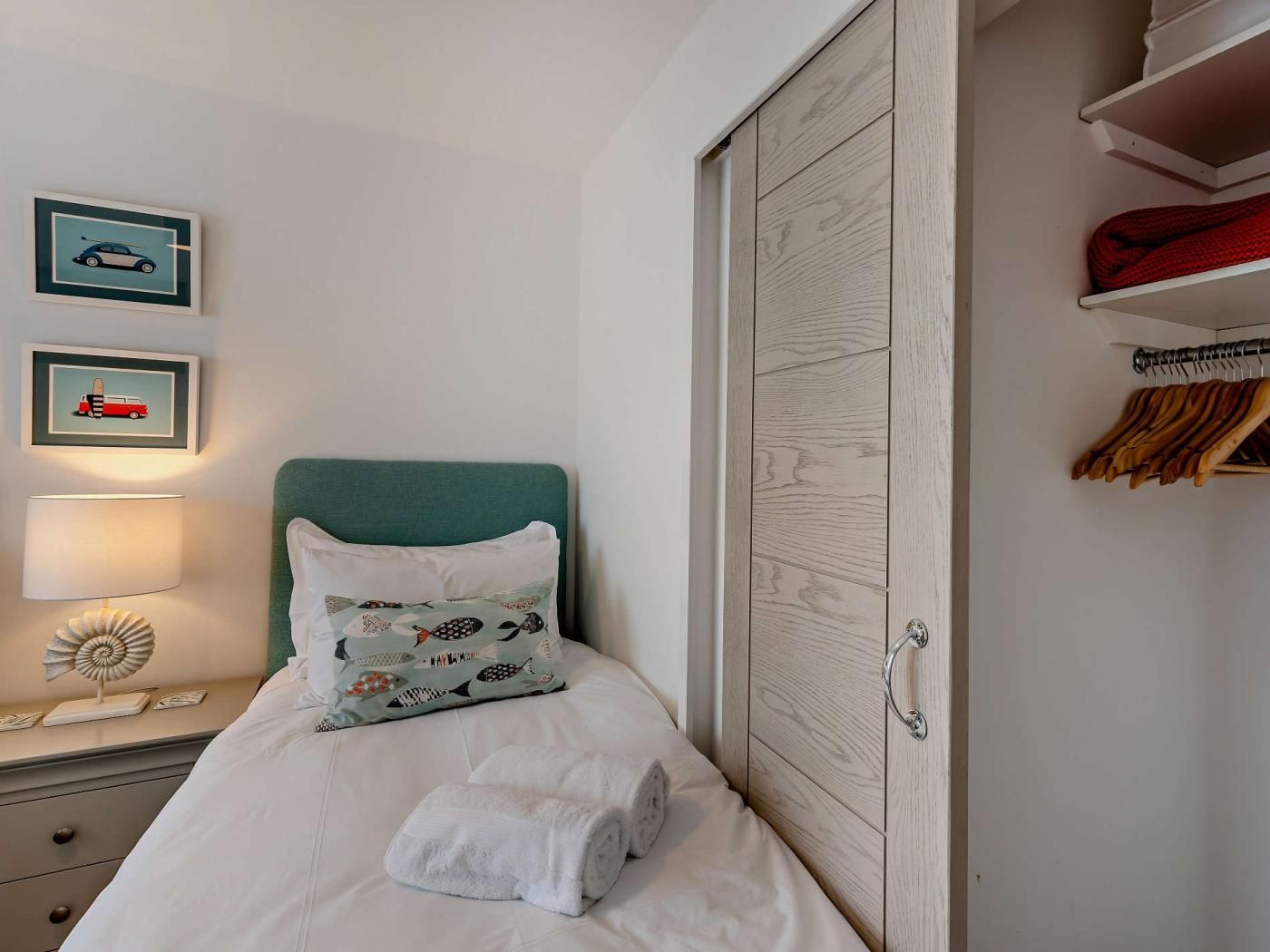 Sleeping four guests, this is a great bolthole for couples or small families who love the long stretch of golden sand which is renowned for its surfing, as well as its swimming. Walk or drive through the sand dunes of Northam Burrows Country Park to reach the beach from this property, which has an upside-down design to maximise its views out across the countryside and towards the coast.