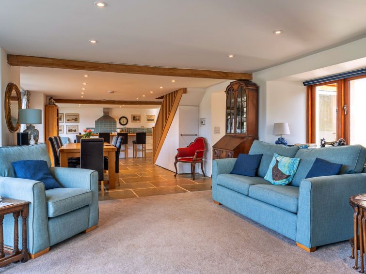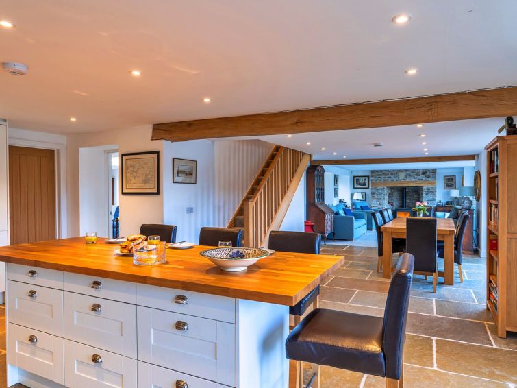 "Lower Netherdowns", 5-room house 160 m2. Object suitable for 8 adults. Living room with 1 sofabed, 1 pull-out bed and open-hearth fireplace. 1 room with 1 double sofabed and 1 french bed. 1 room with 1 double sofabed and 1 french bed. 1 room with 2 beds. Playroom. Kitchen (oven, dishwasher, toaster, kettle, microwave, freezer).
