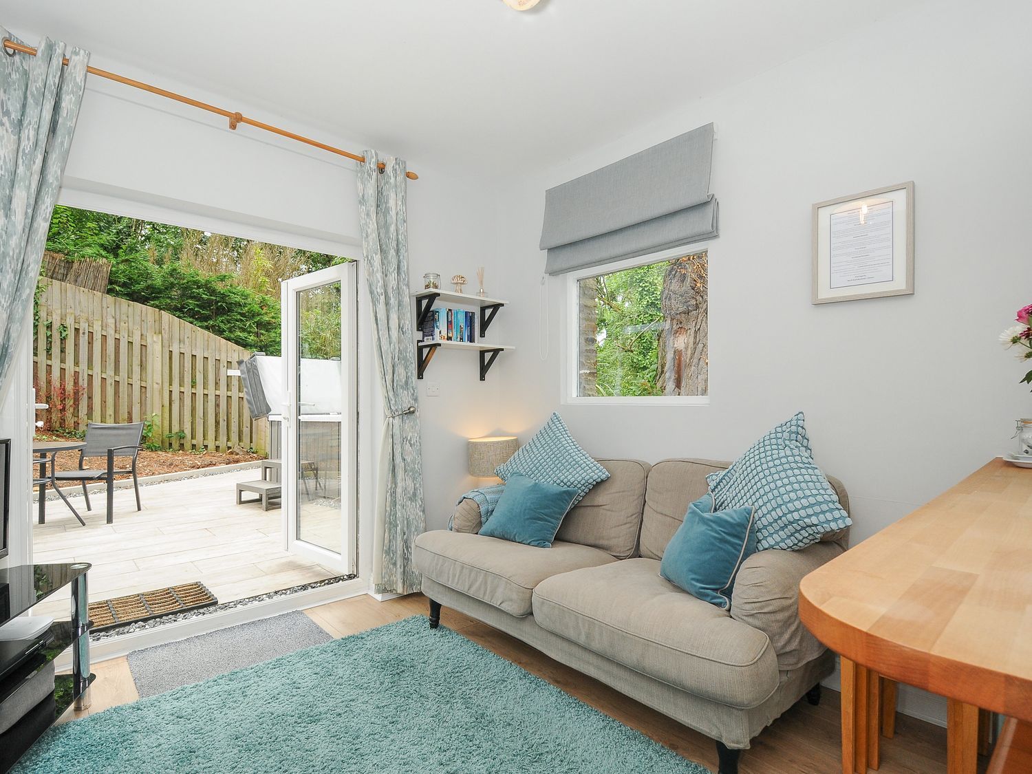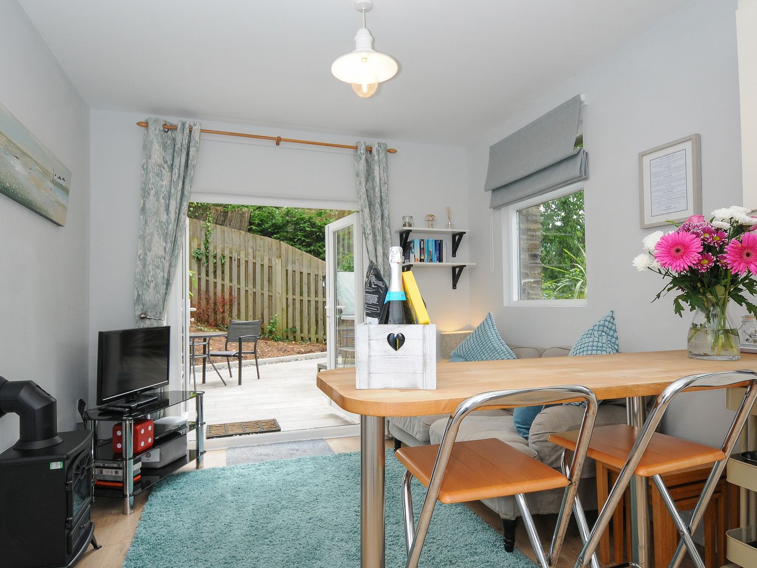 Amenities Newly refurbished and under new management. Electric central heating. Electric oven and hob, microwave, fridge/freezer, kettle, toaster. Smart TV, WiFi. Fuel and power inc. in rent. Bed linen and towels inc. in rent. Off-road parking for 2 cars. Front enclosed decking with furniture, rear enclosed decking terrace with furniture, barbecue and hot tub. Please note: the gardener will be on site every Friday. Two well-behaved pets welcome and included; additional dogs are charged at £35 each. Sorry, no smoking. Shop and pub 0.7 miles, river 0.1 miles, beach 4 miles. Note: Good housekeeping bond of £250. Note: Check-in 5pm, check-out 10am