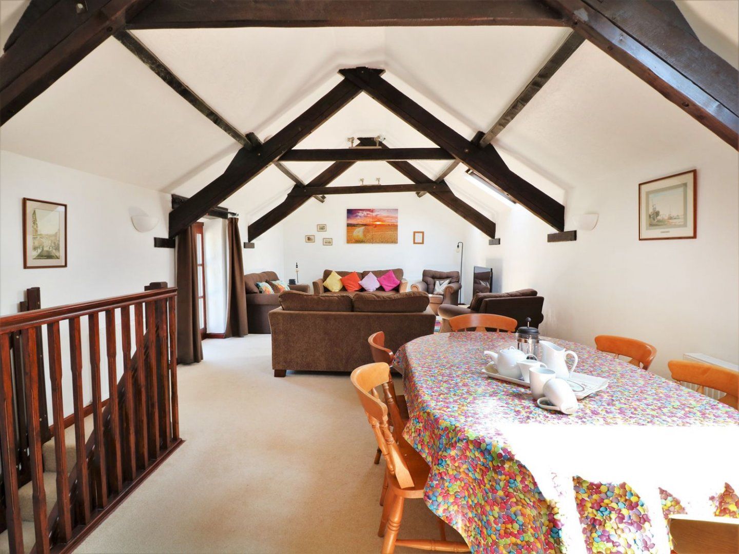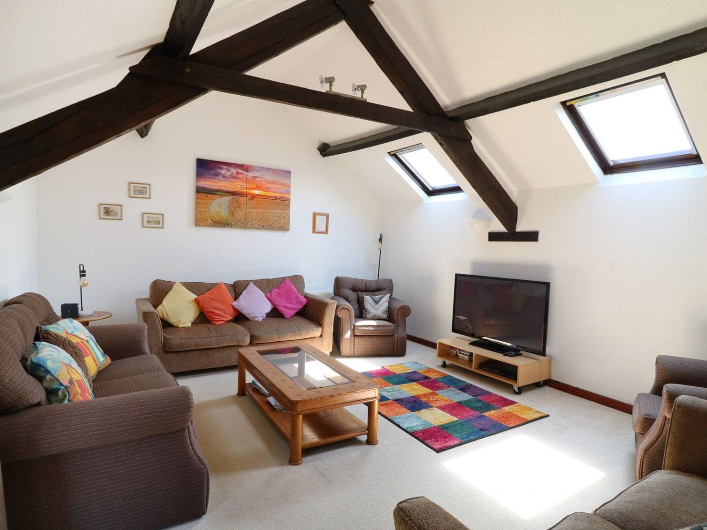 Amenities Oil central heating. Electric oven, ceramic hob, microwave, fridge, dishwasher, washing machine, tumble dryer. TV with Freeview, DVD player, WiFi. Fuel and power inc. in rent. Bed linen and towels inc. in rent (bath and hand towels provided, not bath sheets), please bring your own towels for the beach, pool and hot tub. Highchair and cot available on request. Ample off-road parking. Hot tub. 130-acre natural grounds and orchard with terrace sun loungers (shared with owner and other properties on-site). Two well-behaved dogs welcome- £20 pet charge, no cats. Sorry, no smoking. Shop and pub 1 mile. Note: Outdoor heated swimming pool, shared with other properties on-site, (15' x 30' x 4' to 5' deep) with paddling pool (10' x 9' x 1'6" deep), available from the Friday immediately preceding the last bank holiday in May to the first Friday in September, 10am-evening. Note: External steps up to the entrance, and steps between rooms. Note: Check-in time 5pm. Note: Due to swimming pool, children must be supervised at all times. Note: There is no smoking allowed onsite except within the designated smoking area. Note: Unfortunately, electric cars cannot be charged on site but there is a charging point 4 minutes drive away (Tesco). Note: This property has a minimum stay of 3 nights. Note: This property can only accept check in on a Monday or Friday. Note: Lambing will take place 24/7 in the immediate vicinity from approximately the end of January to the end of March.