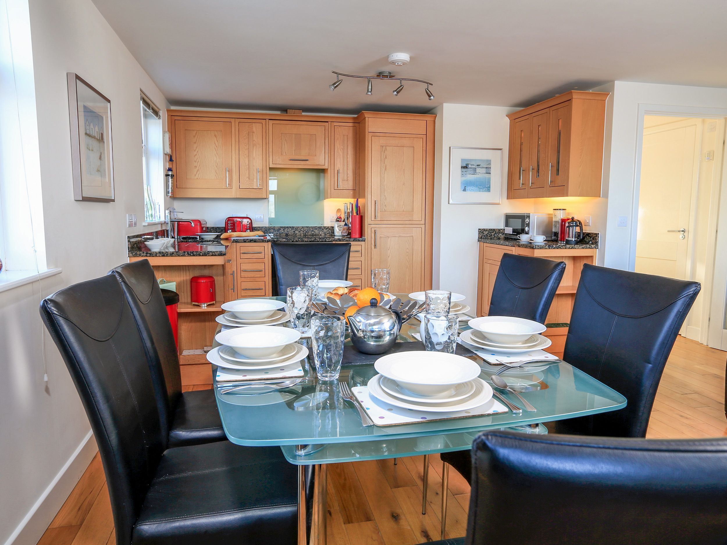 Accomodation Details Duplex apartment. 1 x king-size, 1 x ground-floor twin (can be a super-king on request) with walk-in shower. Bathroom with bath, shower over, basin and WC. Cloakroom with WC and basin. Open-plan living space with kitchen, dining area and sitting area.