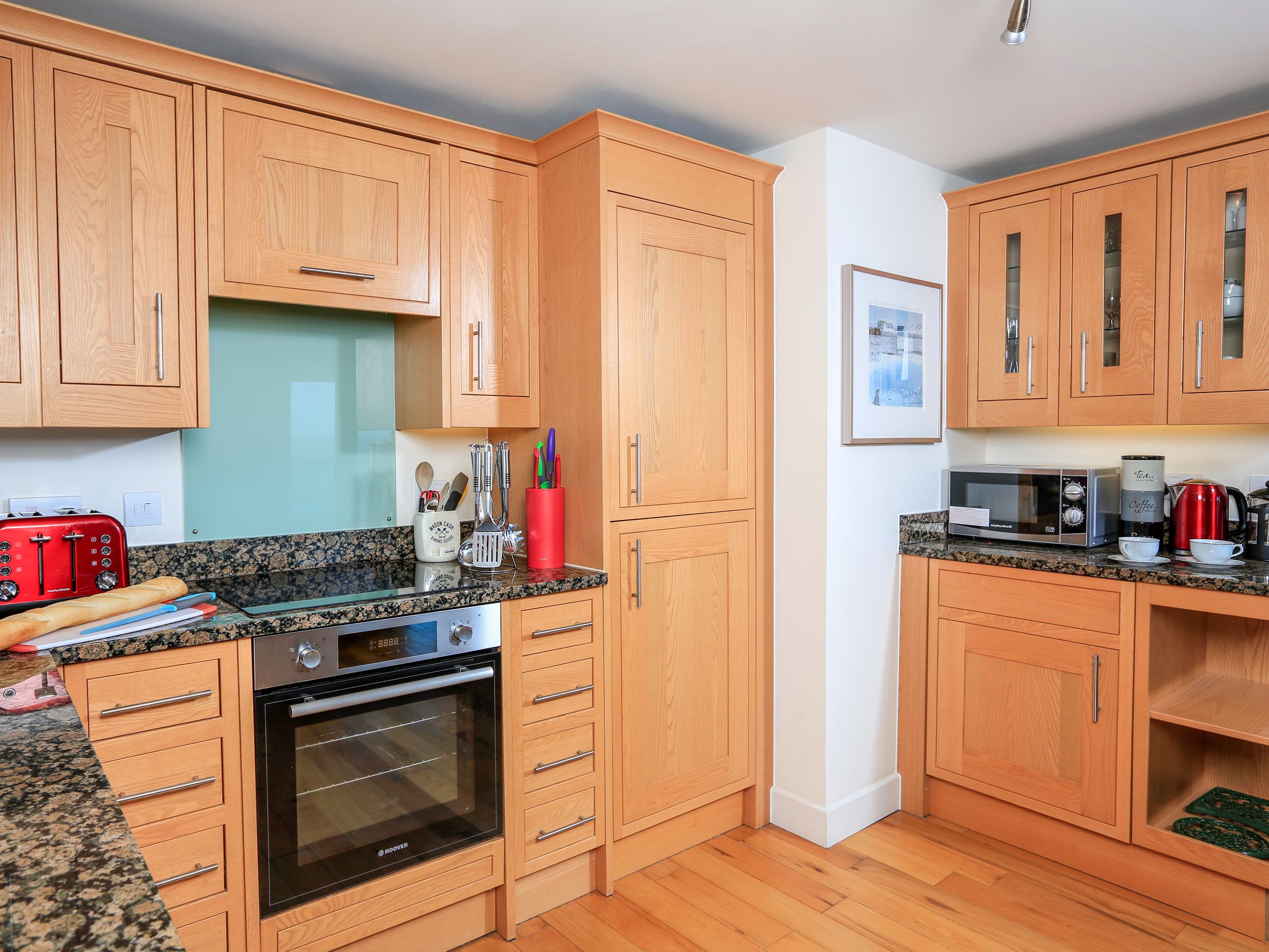 Amenities Central heating. Electric oven and hob, fridge/freezer, microwave, washer/dryer, dishwasher, iPod docking station, Bose Bluetooth speaker, TV with BT YouView box and DVD Player, WiFi. Fuel and power inc. in rent. Bed linen and towels inc. in rent. Designated parking space for one car. Enclosed balcony. Children must be supervised on the balcony.
