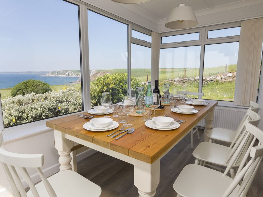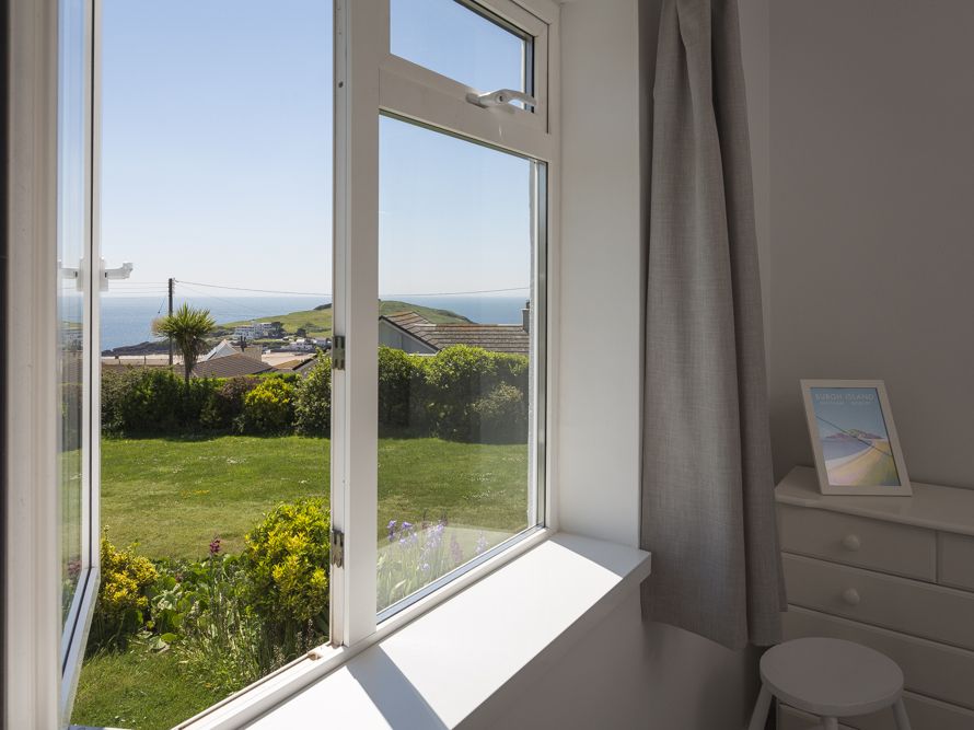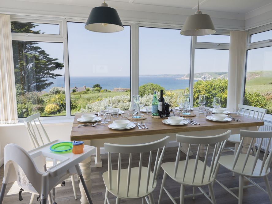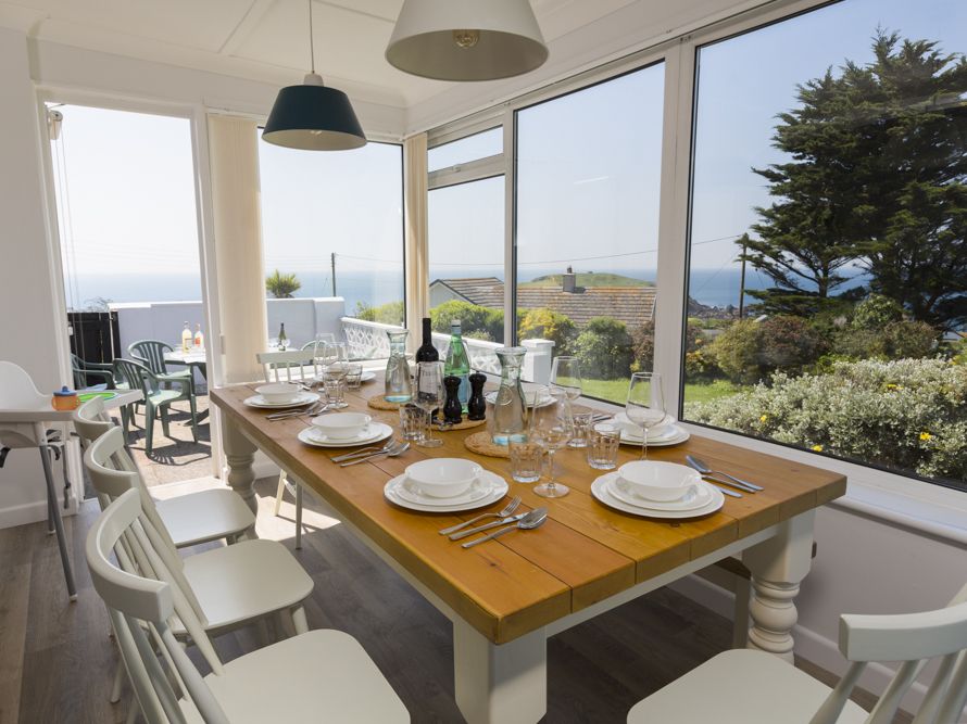 Holiday home Seaspray is set in an enviable location overlooking Bigbury Bay, within walking distance of the sandy beach at Bigbury-on-Sea. There are four bedrooms, including two double bedrooms with King-size beds. Two bathrooms, shower room and family bathroom with bath with hand-held shower. There is also an outside hot/cold shower. There is a well-equipped kitchen and utility room, and spacious living room with wood-burning stove. The room extends via an open archway into a conservatory dining area. To the front and side of the property is a good-sized, mature garden laid mainly to lawn. Seaspray is an ideal holiday retreat for large family or up to three couples.