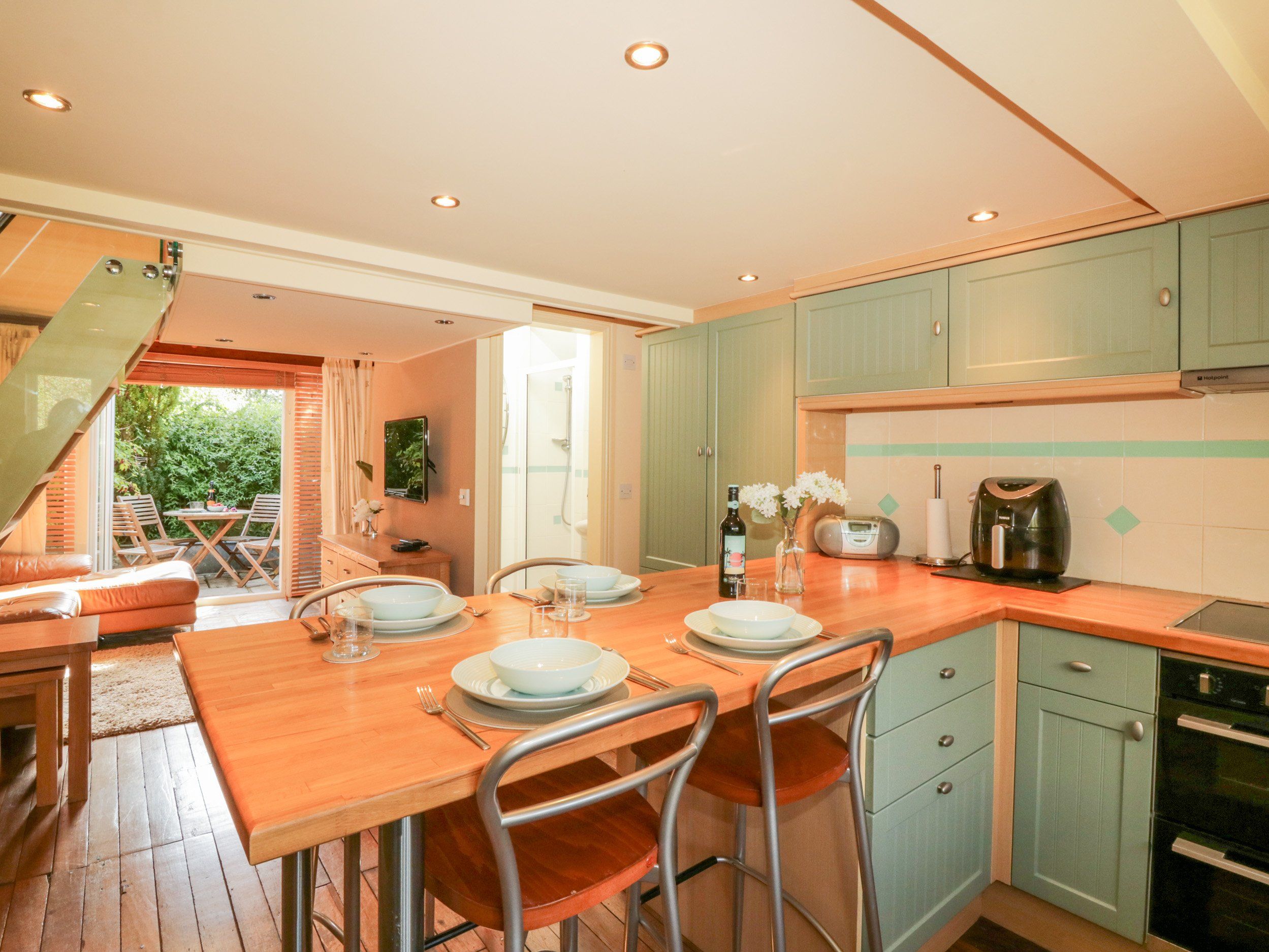 Accomodation Details Reverse-level, over three floors. Two bedrooms: 1 x ground-floor king-size with en-suite bath, shower over, basin and WC, 1 x second-floor twin. First-floor shower room with walk-in shower, basin and WC. First-floor kitchen/diner and sitting room with woodburning stove